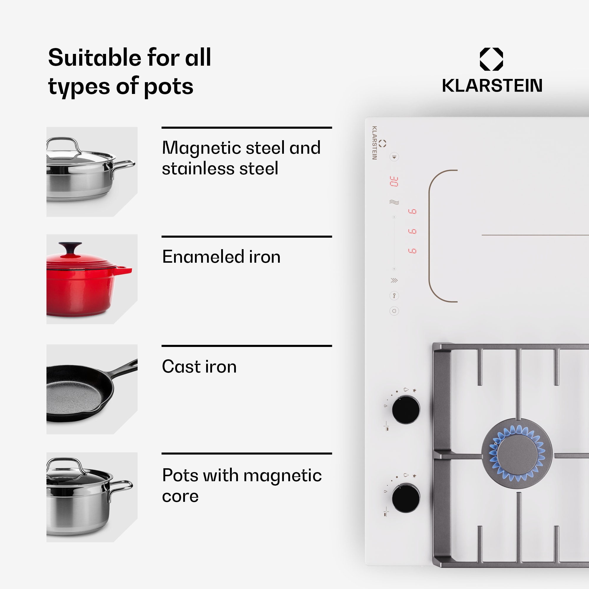 Klarstein MultiChef 4, indukčná a plynová varná doska, 4 varné zóny, 2 plynové horáky, 2 indukčné varné dosky, FlexZone –Kúpiť
