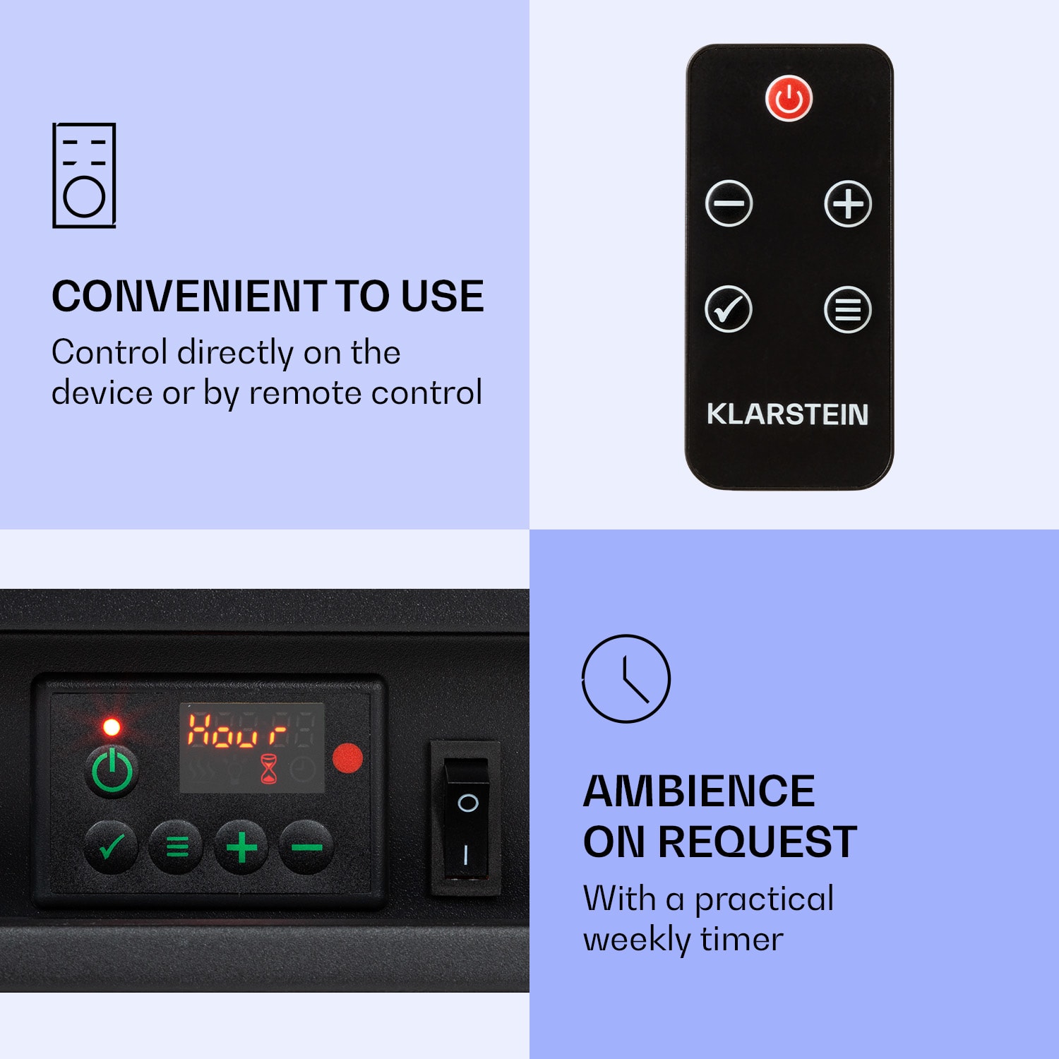 Romantická atmosféra krbu so živými plameňmi – úplne bez ohňa a dymu. Jemné svetlo v rôznych úrovniach jasu imituje plamene a tlejúce polená, takže elektrický krb Nevis Peak od Klarstein okamžite premení miestnosť na jedinečný útulný skvost. Zapínateľná funkcia vyhrievania s nastaviteľným rozsahom teploty 10 až 30 °C vám poskytne príjemné teplo. Vďaka časovaču môžete funkciu pohodlne nastaviť a krb Klarstein Nevis Peak tak prispôsobiť týždennému rytmu vašej domácnosti. Tento komfort ešte zvyšuje diaľkové ovládanie. Jeho vonkajší vzhľad je do detailov vymodelovaný podľa skutočného kamenného krbu, hoci materiál je podstatne ľahší.Cíťte sa doma pohodlne: Elektrický krb Nevis Peak od spoločnosti Klarstein vyčarí útulnú, hrejivú atmosféru rovnako ako praskajúci oheň.Poznámka: Tento výrobok je vhodný len do dobre izolovaných miestností alebo na príležitostné použitie.