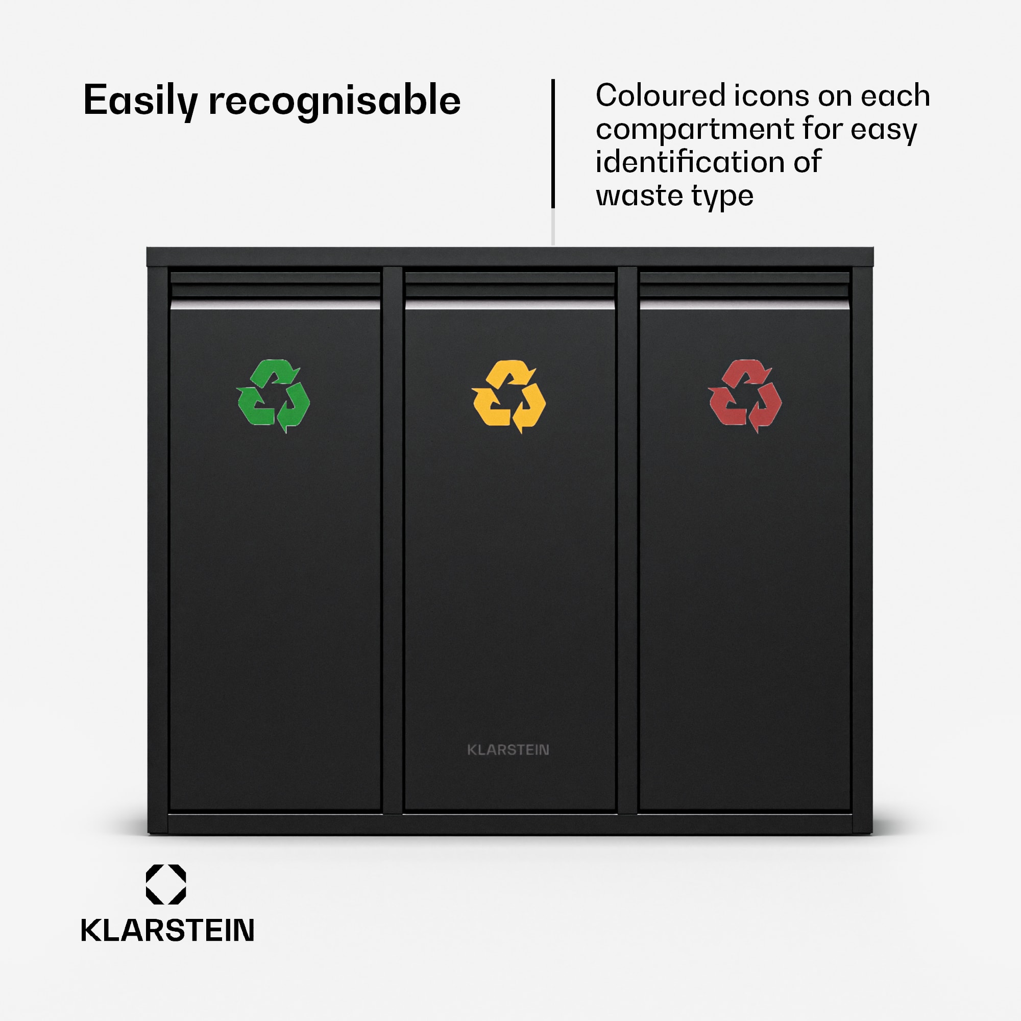 Klarstein Ordnungshüter 3, odpadkový kôš, 45 litrov, 3 recyklačné koše, nástenná inštalácia