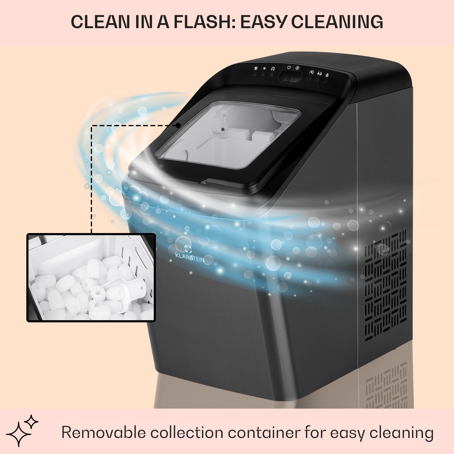 Či už na rodinnej oslave, domácej párty alebo ako profesionálny výrobník ľadu v baroch alebo reštauráciách: s výrobníkom ľadu Klarstein Partytime sa dajú všetky nápoje perfektne pripraviť a osviežujúco ochladiť. Výkonný výrobník ľadu Partytime vyrobí za deň až 15 kg číreho ľadu a perfektne sa hodí na použitie na všetkých zábavách, v pohostinstvách a baroch. Aj na normálne domáce použitie je Partytime skutočná výhra: s ním máte doma vždy čerstvé ľadové kocky na chladenie nápojov. V závislosti od nastavenej veľkosti S alebo L pripravíte 9 ľadových kociek v jednom cykle od 7 do 15 minút. V prípade prázdnej nádrže na vodu alebo plnom zásobníku na ľadové kocky, Vás včas upozornia kontrolky na prehľadom dotykovom displeji na prednej strane výrobníka ľadu. Po použití, sa vďaka funkcii samostatného čistenia a hladkej konštrukcii z ušľachtilej ocele, dá ľahko umyť. Ušľachtilý dizajn s čiernou prednou stranou perfektne zapasuje do každého nábytku. Kryštálovo čistá záležitosť: s výrobníkom ľadu od Klarstein sa v okamžiku dajú pripraviť chutné a osviežujúce nápoje na párty, v pohostinstvách a baroch.