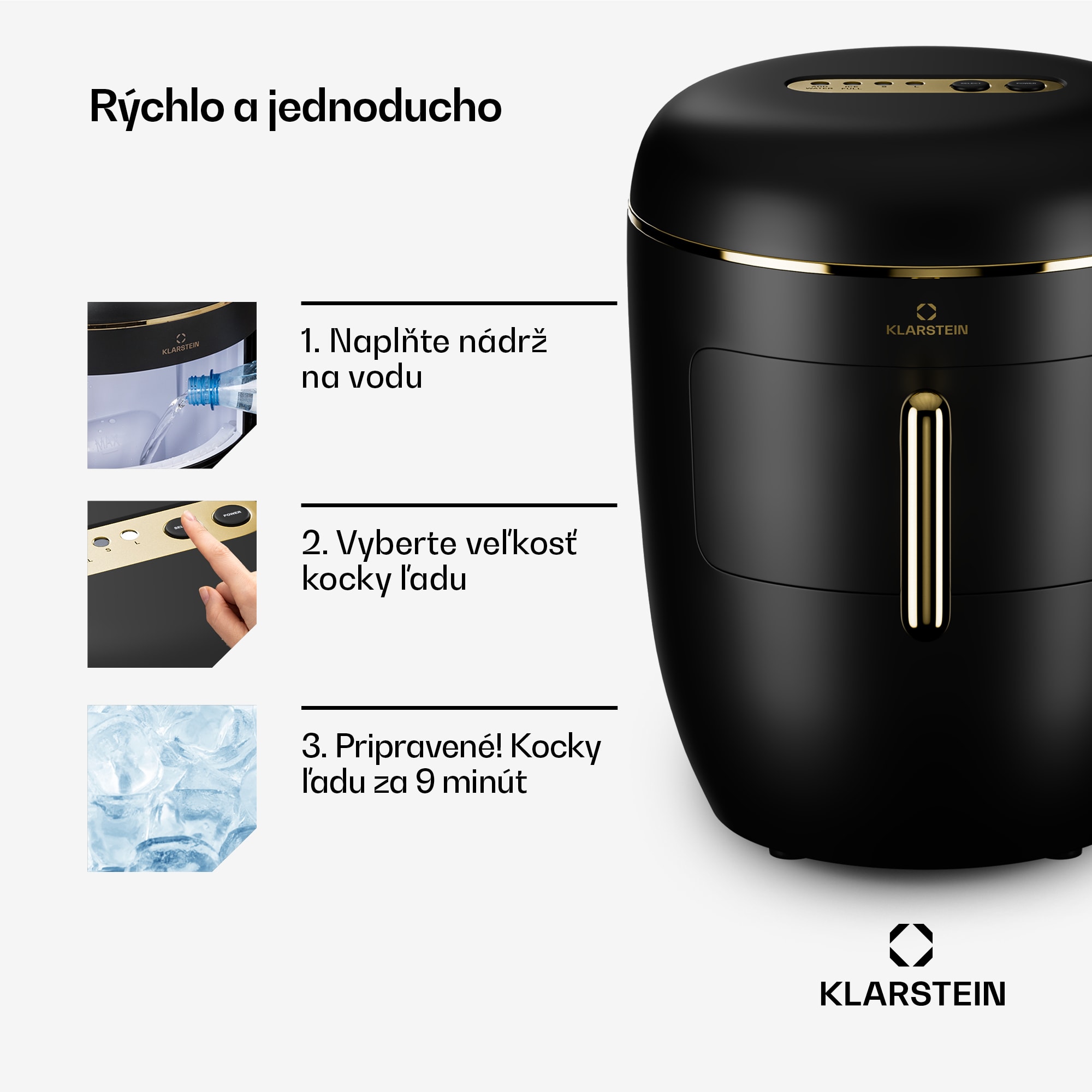 Osviežujúci nápoj kedykoľvek: výrobník ľadu Klarstein Passau vám nekomplikovaným spôsobom zaobstará ľad na whisky, limonádu, koktaily a iné nápoje. Výkonný stroj na výrobu ľadových kociek Passau je schopný vyrobiť každý deň až 15 kg kociek ľadu v dvoch rôznych veľkostiach. Vďaka tomu je ideálny na použitie doma, na večierkoch alebo záhradných párty. Výrobník kociek ľadu sa ľahko a pohodlne obsluhuje pomocou intuitívneho ovládacieho panela. Veľkorysá nádrž na vodu s objemom 2,3 litra a nádoba na ľad s kapacitou 700 g sú k dispozícii na prípravu ľubovoľného množstva ľadových nápojov. Obzvlášť praktické je, že nádobu s hotovými kockami ľadu môžete ľahko vybrať a že čistenie je veľmi jednoduché vďaka funkcii automatického čistenia.Čas na ľadovo vychladené nápoje: stroj na výrobu ľadových kociek Klarstein Passau vykúzli kedykoľvek čerstvé kocky ľadu a vďaka svojmu dizajnu je skutočným pútačom pozornosti v každej kuchyni alebo v bare!