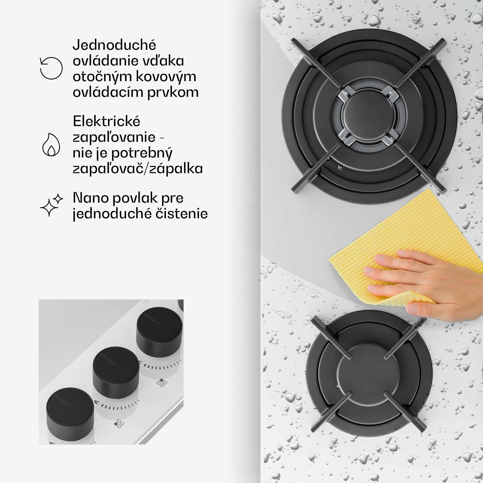 Plynová varná doska Klarstein Velaire spája minimalistický dizajn s výkonnou a energeticky úspornou technológiou. Vďaka harmonickej kombinácii matných a lesklých povrchov sa bez problémov začlení do moderných interiérov. Táto varná doska, ktorá je súčasťou dizajnového radu Velaire, stelesňuje minimalizmus, pokoj a jasnú geometriu, vďaka čomu sa stane prirodzeným stredobodom každej kuchyne. Štyri výkonné, vysokokvalitné horáky s celkovým výkonom 8000 W zaručujú plynulé varenie. Plynová varná doska sa vďaka kovovým gombíkom ľahko používa a vďaka elektrickému zapaľovaniu nie sú potrebné zápalky ani zapaľovač. Spotrebič je možné prevádzkovať na LPG aj zemný plyn. Má tiež ochranu proti zlyhaniu plameňa a nanopovlak, ktorý uľahčuje čistenie. Chceli by ste si zariadiť celú kuchyňu s jednoduchou eleganciou a jednotnosťou? Objavte všetky naše spotrebiče Velaire a vytvorte si elegantnú a harmonickú kuchyňu!Upozornenie: Farba produktu sa môže mierne líšiť od zobrazenia na fotografii.