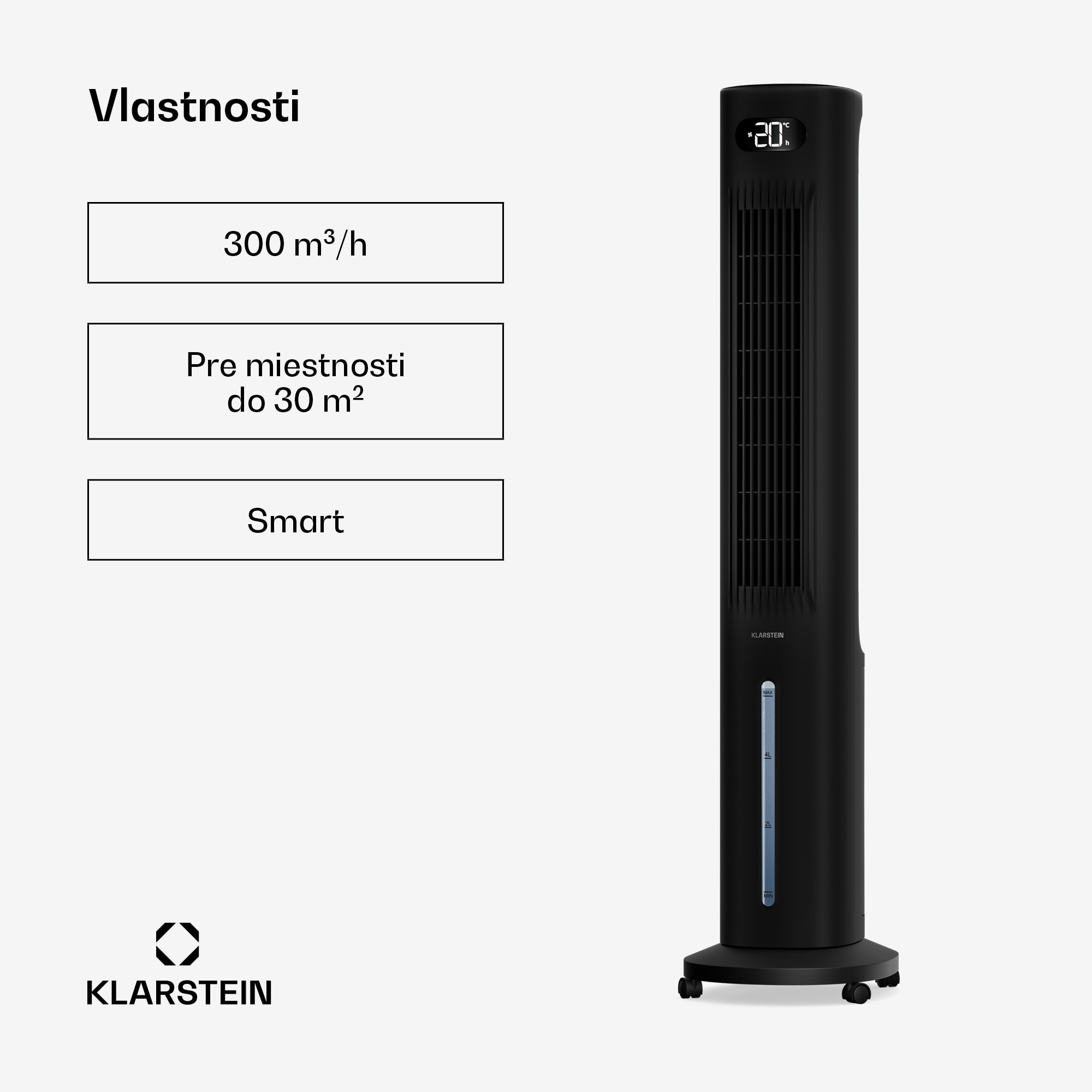 Ochladzovač vzduchu s vodným chladením Klarstein Polar kombinuje vysoký výkon s inteligentnou a pohodlnou obsluhou. Chladí miestnosti s plochou až 30 m² s prietokom vzduchu 300 m³/h, dvoma chladiacimi balíkmi, tromi úrovňami výkonu a tromi režimami. Zariadenie je možné ovládať buď diaľkovým ovládačom, priamo na zariadení, cez aplikáciu alebo pomocou asistenta inteligentnej domácnosti, ako je Google Home alebo Alexa.24-hodinový časovač a integrovaný nočný režim vždy zaručujú optimálne nastavenie doby prevádzky, ako aj obzvlášť pohodlnú obsluhu. Chladič je navyše vybavený odnímateľnou 5-litrovou nádržou na vodu.
