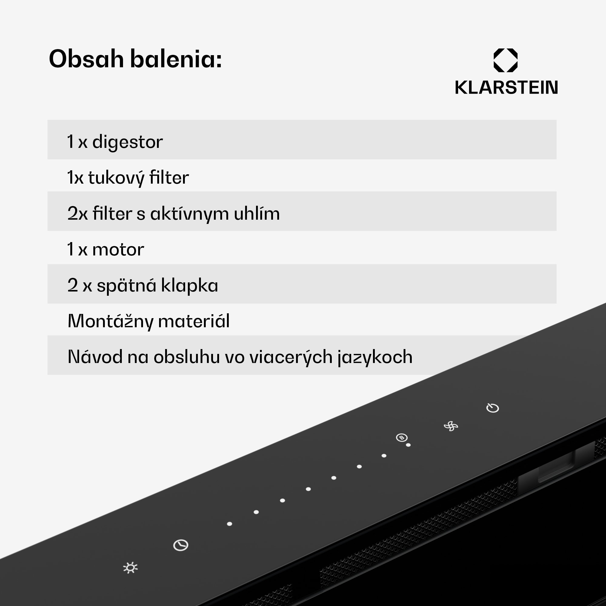 Klarstein Royal Flush Eco digestor, 842 m³/h prietoku vzduchu, šikmý, EEK A, 70 dB, LED