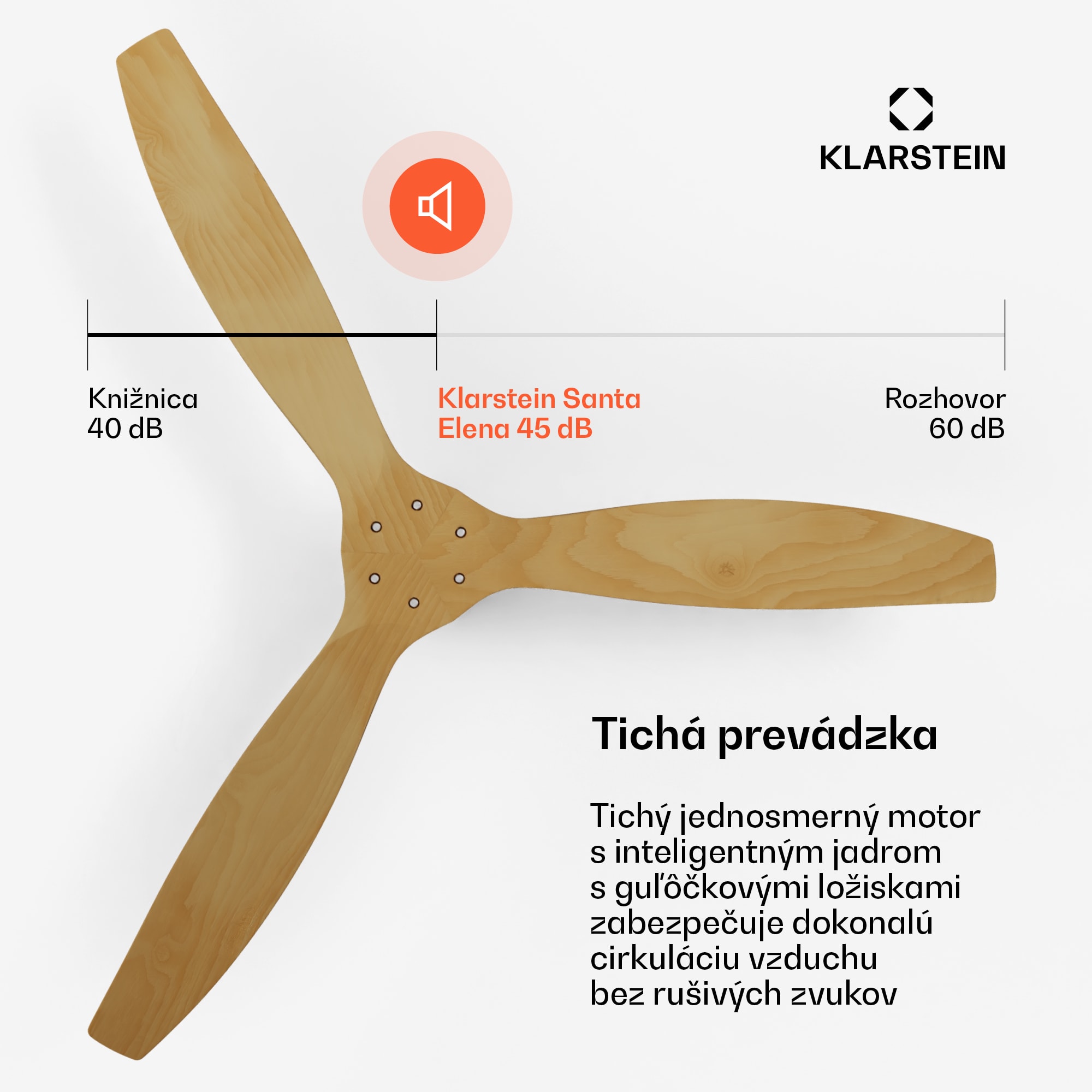 Zažite maximálny komfort a moderný dizajn so stropným smart ventilátorom Klarstein Santa Elena. Jednosmerný motor s nízkohlučným medeným guľôčkovým ložiskom umožňuje presné a tiché ovládanie, vďaka čomu je o pôsobivých 80 % energeticky efektívnejší ako bežné stropné ventilátory.Ventilátor so šiestimi úrovňami rýchlosti ponúka všestranný výber prúdenia vzduchu, ktorý možno prispôsobiť individuálnym potrebám. Jeho ultraľahké lopatky z pravého dreva v kombinácii s jednosmerným motorom zaručujú takmer nehlučnú prevádzku a uvoľnenú atmosféru.Vďaka inteligentným funkciám, ako je ovládanie cez aplikáciu Smart APP, diaľkové ovládanie alebo hlasové ovládanie, možno ventilátor ovládať odkiaľkoľvek v dome. Obojsmerná prevádzka umožňuje používanie v letnom a zimnom režime, čím sa šetria náklady na energiu počas celého roka. V lete ventilátor prenáša chladný vzduch smerom nahor a zabezpečuje príjemný chládok, zatiaľ čo v zime rovnomerne rozvádza teplý vzduch smerom nadol.Jednoduchá inštalácia pomocou dodaných spúšťacích tyčí 15 cm/25 cm umožňuje flexibilné umiestnenie ventilátora v miestnostiach s rôznou výškou stropu. Stropný smart ventilátor Klarstein Santa Elena sa dodáva spolu s diaľkovým ovládačom a je dokonalým doplnkom do každej domácnosti, ktorá oceňuje moderný komfort a atraktívny dizajn.