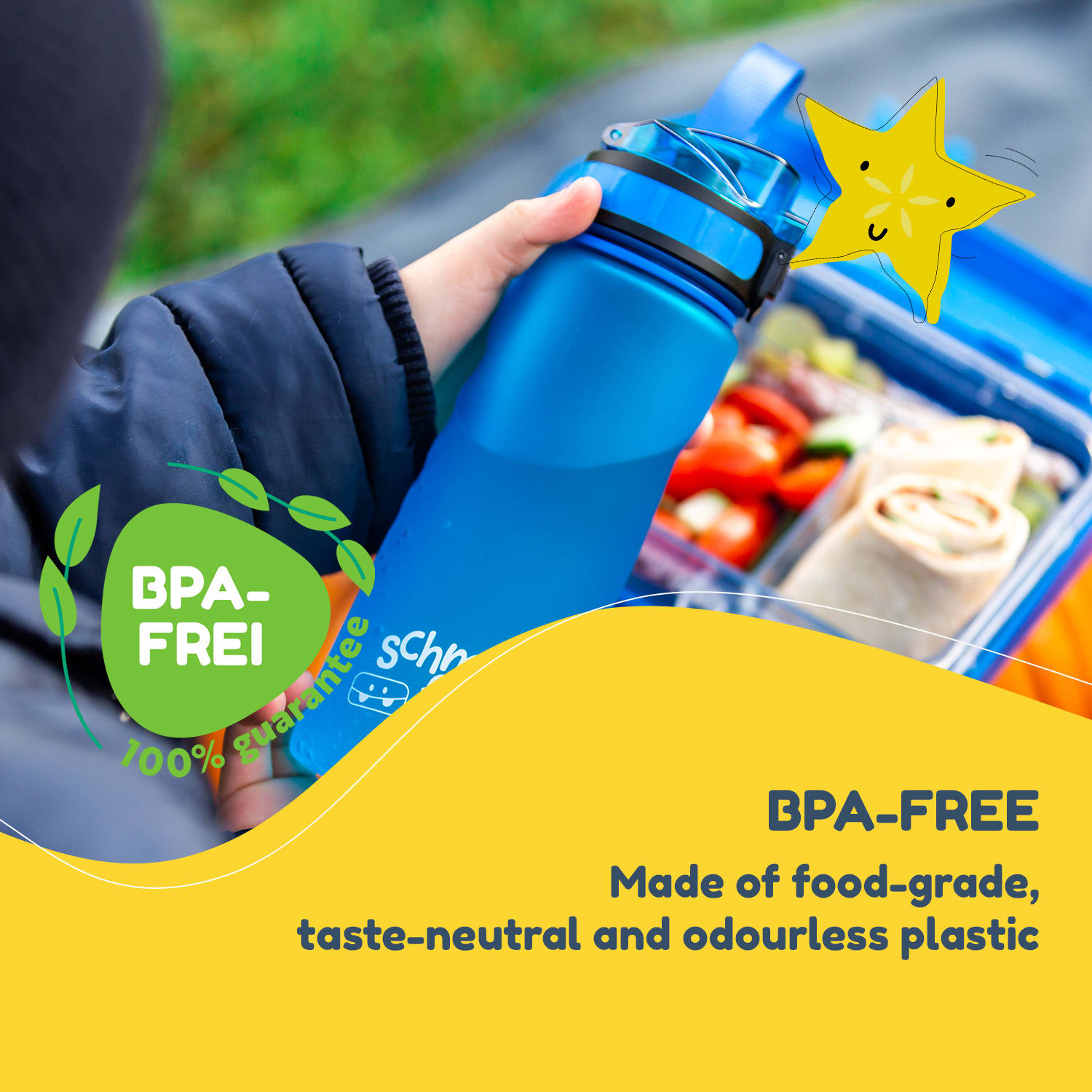 Raňajková súprava schmatzfatz od Klarstein je ideálnym spoločníkom na každý deň. Či už pre mladých alebo starších: Praktická súprava obsahuje box na obed a farebne zladenú fľašu na pitie. A pritom vždy cestujete naľahko. Dóza na obed aj fľaša na pitie sú vyrobené zo super ľahkého a extrémne nárazuvzdorného Tritanu, ktorý samozrejme neobsahuje BPA, a preto je úplne zdravotne neškodný! Obedovú dózu možno rozdeliť na 4 alebo 6 malých priehradiek. Jej špeciálne veko zaisťuje najlepšiu ochranu pred únikom. Bez obáv ju môžete naplniť aj hustými tekutinami, ako je jogurt alebo tvaroh. Fľaša na pitie má objem pol litra a je tiež vybavená nepriepustným uzáverom. Či už v školskej taške, batohu alebo dokonca v držiaku na bicykli: z raňajkovej súpravy schmatzfatz od Klarstein nič nevytečie. Dóza na olovrant aj fľaša na pitie sa dajú umývať v umývačke riadu a ľahko sa čistia.Či už v škole, škôlke, pri športe alebo na výletoch: fľaša na pitie schmatzfatz od Klarstein vám ponúka mnoho výhod vo všetkých každodenných situáciách. Presvedčí vás svojím športovým dizajnom vo výraznej farbe s roztomilým logom.