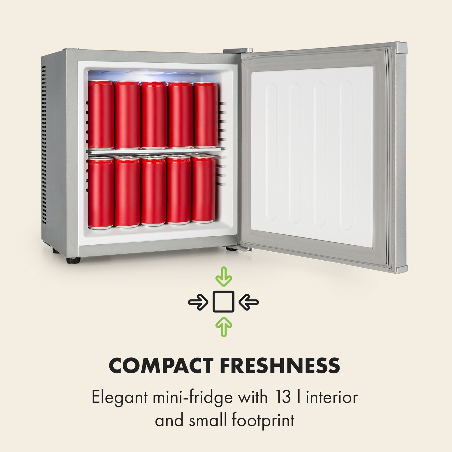 Klarstein Secret Cool, mini chladnička, minibar, 13 l, energet. trieda G, strieborná