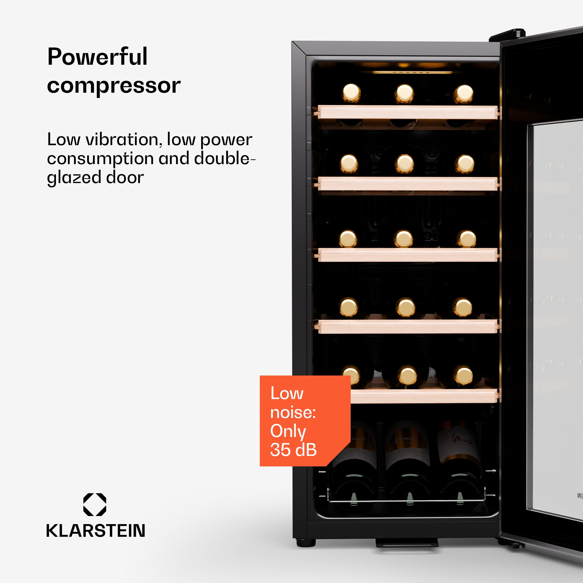 Vinotéka Klarstein Shiraz Premium Smart 18 je nielen elegantnou, ale aj inteligentnou voľbou pre milovníkov vína. S veľkorysou kapacitou 18 fliaš ponúka dostatok priestoru a očarí akcentom na elegantný dizajn.LED osvetlenie vo vnútri nielen vytvára vizuálne akcenty, ale aj zvýrazňuje prezentované fľaše. Dotykový displej umožňuje jednoduché ovládanie a funkcia WiFi umožňuje pohodlné ovládanie cez aplikáciu v smartfóne.Teplotu je možné nastaviť od 5 do 18 stupňov Celzia, čo je ideálne na skladovanie rôznych druhov vína. Päť drevených políc ponúka jednoduché a elegantné možnosti uloženia. Tichý chod chladničky zaisťuje, že vína môžu optimálne vyzrieť, UV ochrana ich chráni pred nežiaducimi vplyvmi. Chladnička na víno Klarstein Shiraz Premium Smart 18 kombinuje funkčnosť, moderný dizajn a inteligentné funkcie, vďaka čomu je nepostrádateľným spoločníkom pre milovníkov vína, ktorí chcú svoju zbierku prezentovať štýlovo a uchovávať ju čo najlepšie. Táto vinotéka je skutočným klenotom pre každého znalca.