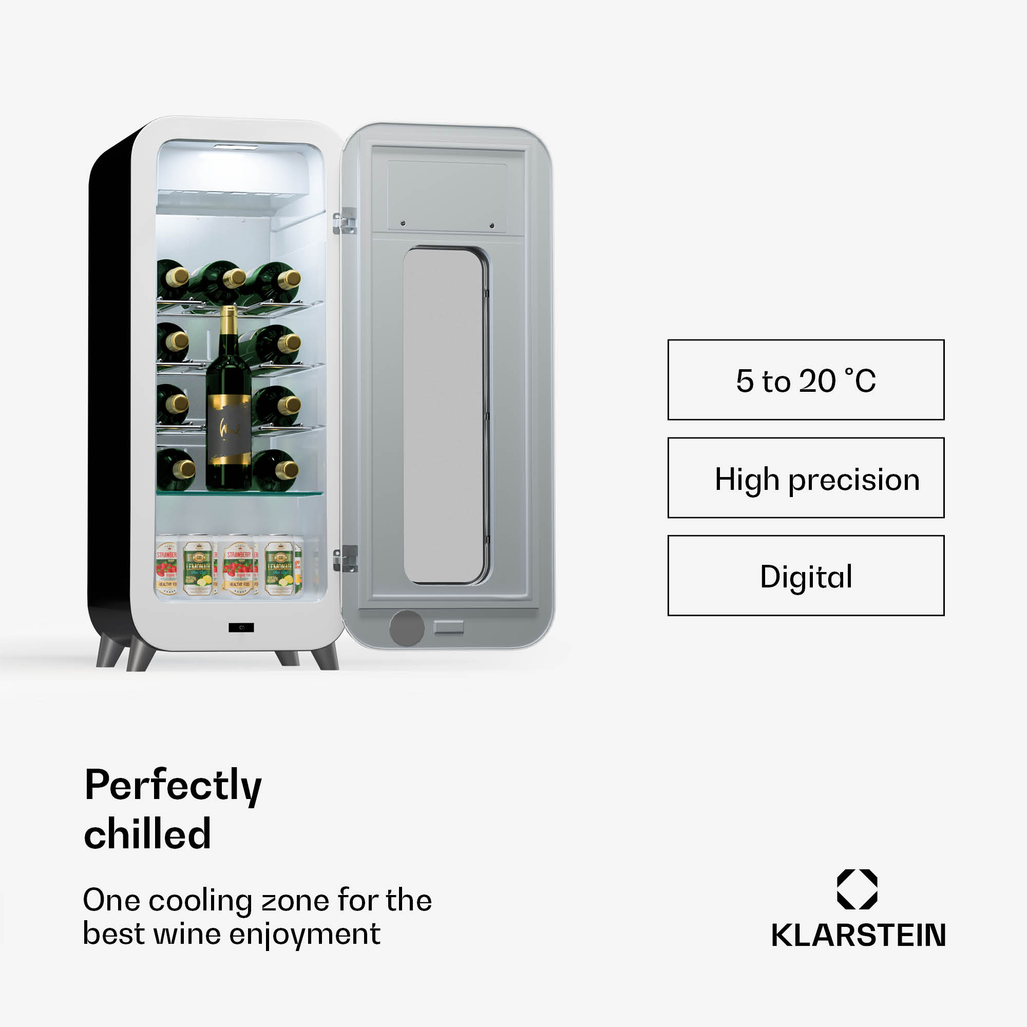 Klarstein Shirley 15 Uno. chladnička na víno, 15 fliaš, 5 – 20 °C, dotykové ovládanie, retro
