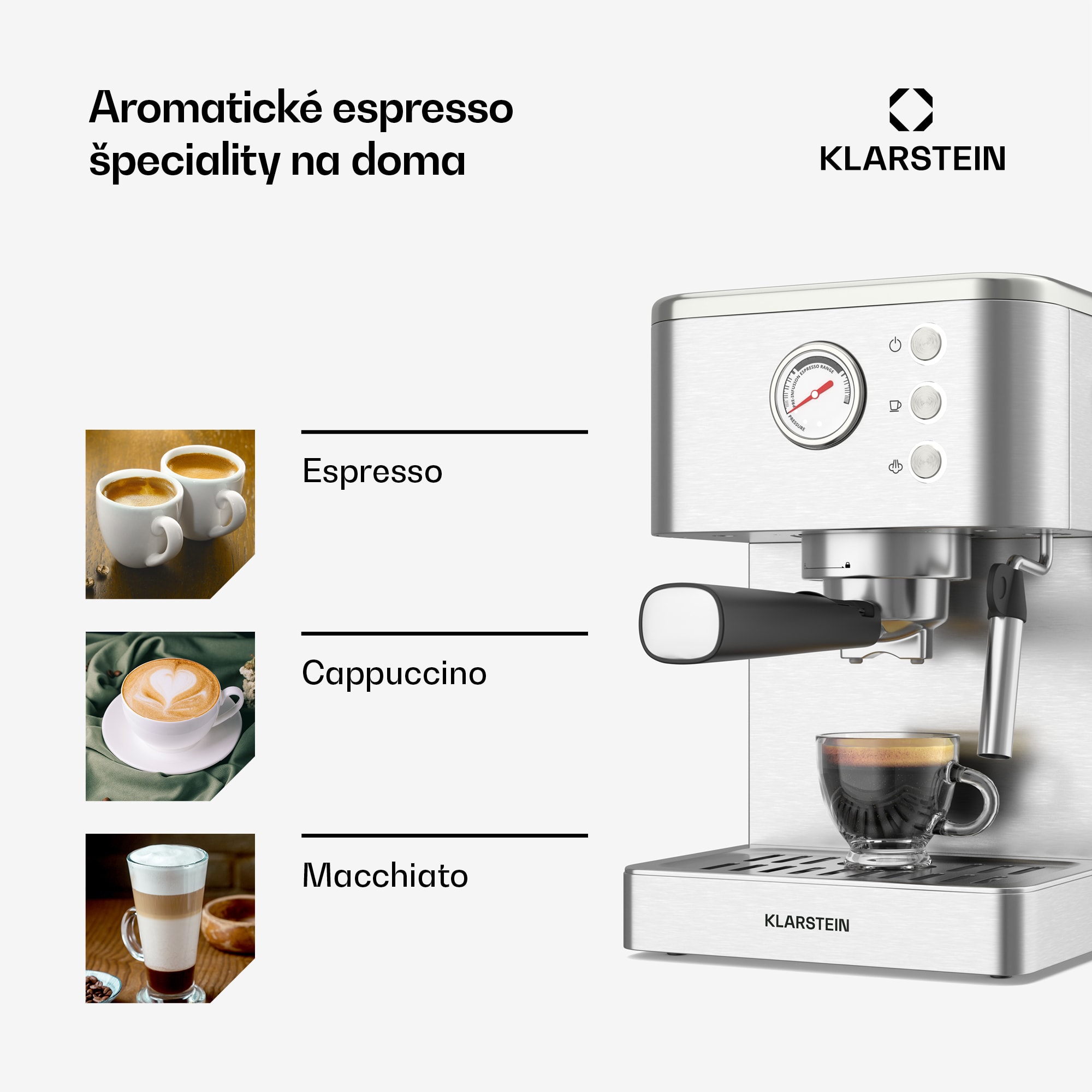 Kávovar s portafiltrom Klarstein SteelPresso prináša intenzívny pôžitok z espressa jediným stlačením tlačidla. Je kompaktný a výkonný a vďaka čerpadlu s tlakom 20 barov pripraví krémové espresso v baristickej kvalite – ideálne pre znalcov a malé kuchyne.SteelPresso možno použiť na prípravu horúceho aj studeného espressa, a to buď ako jednu, alebo dve porcie. Integrovaný naparovač vytvára krémovú mliečnu penu na cappuccino a latte macchiato. Nádrž na vodu s objemom 1,5 litra zabezpečuje dostatočnú kapacitu, zatiaľ čo plášť z nehrdzavejúcej ocele dodáva prístroju odolný a kvalitný vzhľad. Dodávaná hliníková portafiltračná jednotka a praktická ohrievacia platňa dopĺňajú baristický zážitok. Kompaktný dizajn sa hodí aj do menších kuchýň a ponúka jednoduché ovládanie bez zbytočných displejov alebo dotykových funkcií.Zažite nezameniteľnú chuť čerstvého espressa – kávovar s portafiltrom SteelPresso od spoločnosti Klarstein! Objednajte si teraz!