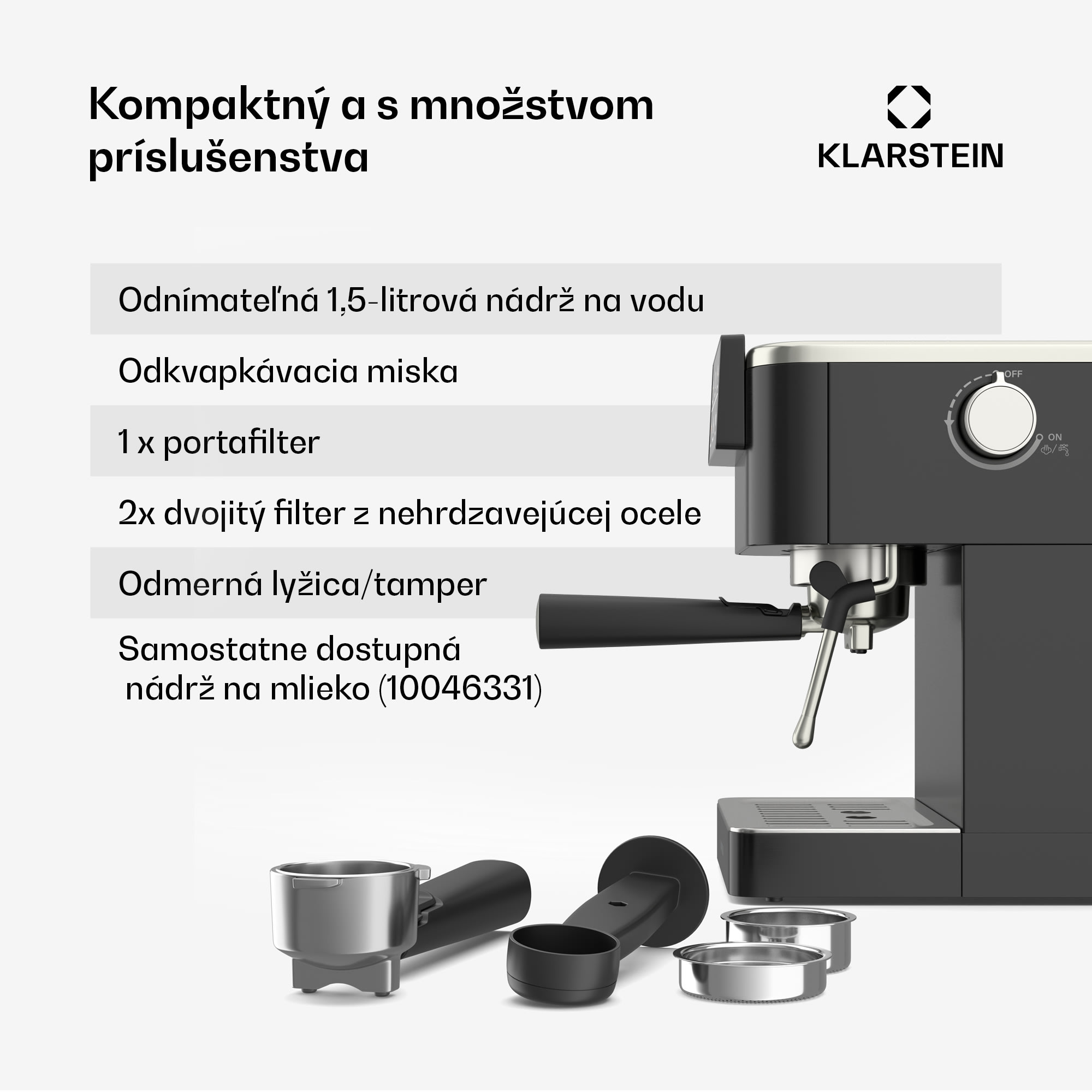Klarstein SteelPresso Touch kávovar s portafiltrom, Dotykový displej, 20 bar, Nehrdzavejúca oceľ