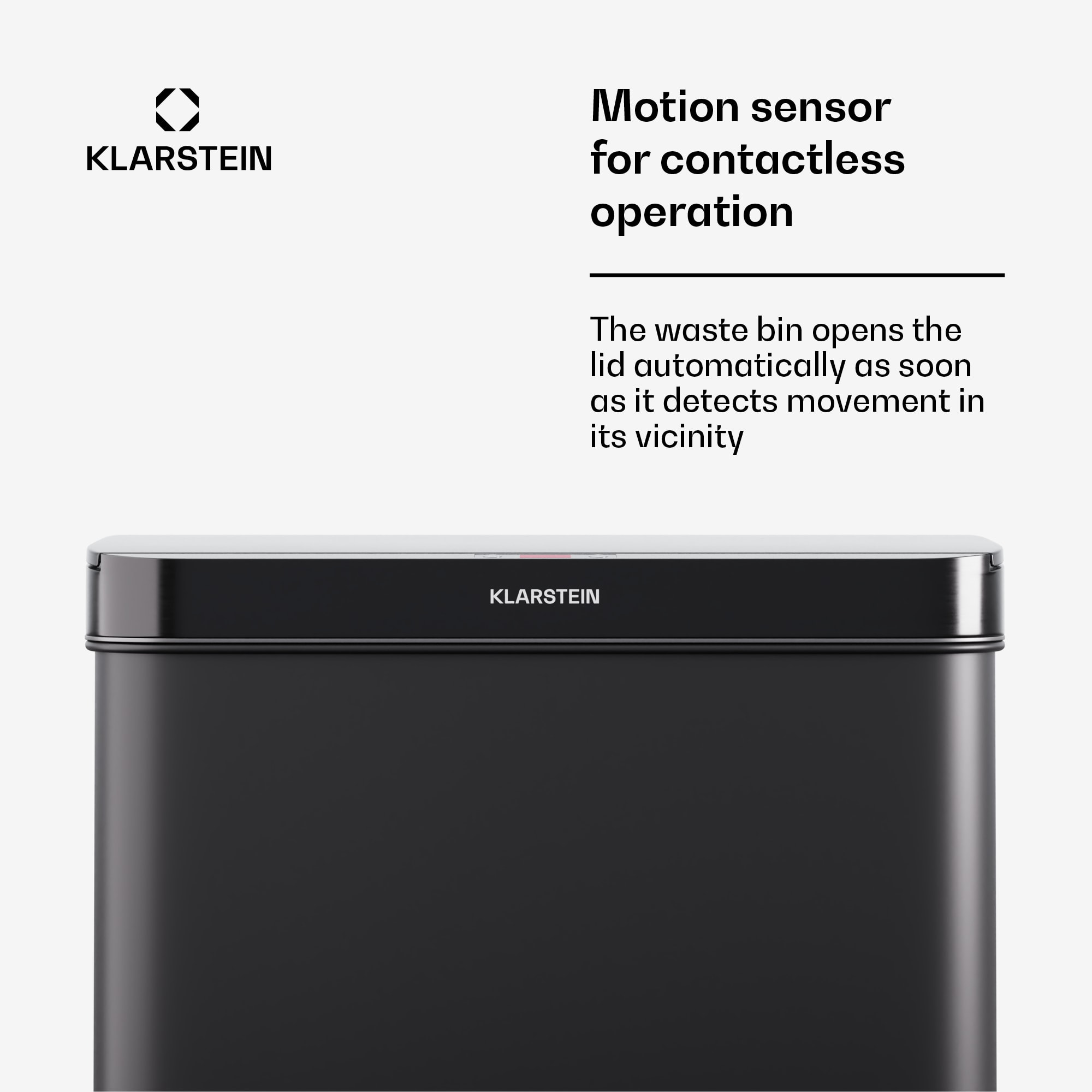 Senzorový odpadkový kôš Klarstein Touchless 60 l nie je len obyčajný odpadkový kôš, ale inteligentné riešenie na čistú a hygienickú likvidáciu odpadu. Vďaka elegantnému dizajnu a množstvu inovatívnych funkcií je obohatením pre vašu domácnosť, kanceláriu alebo verejné priestory.Tento kôš je vybavený snímačom pohybu a umožňuje bezdotykové ovládanie, čo je praktické najmä vtedy, keď máte plné ruky odpadu alebo jednoducho chcete dosiahnuť maximálnu hygienu. Vďaka veľkorysému objemu 60 litrov je senzorový odpadkový kôš Klarstein Touchless ideálny na každodenné použitie, či už v kuchyni, pracovni alebo vo verejných priestoroch s veľkým množstvom odpadu.Vysokokvalitný kryt z nehrdzavejúcej ocele má elegantný čierny matný povrch a nielenže dodáva estetický vzhľad, ale je aj mimoriadne robustný a odolný voči odtlačkom prstov, takže sa ľahko čistí a udržiava. Možnosť manuálneho aj automatického otvárania a zatvárania veka prostredníctvom intuitívneho ovládacieho panela ponúka flexibilné používanie podľa potreby.Vďaka systému zatvárania Soft-Close sa veko zatvára ticho a jemne bez nepríjemných zvukov.Senzorový odpadkový kôš Klarstein Touchless 60 l je nielen praktickým nástrojom na likvidáciu odpadu, ale aj štýlovým doplnkom, ktorý skrášli vaše prostredie a uľahčí vám každodenný život.