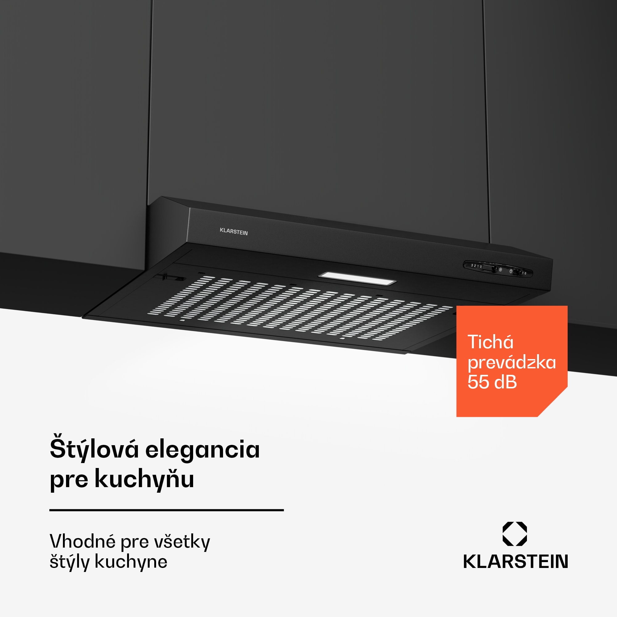 Digestor Klarstein UW60BL zabezpečí kvalitné odsávanie pary a vzduchu z každej menšej alebo stredne veľkej kuchyne.Aby sa zariadenie plne dokázalo prispôsobiť Vašim potrebám, má tri rôzne stupne odsávania. Pri najvyššom stupni dokáže odsať až 317 metrov kubických vzduchu za hodinu.Vďaka jednomotorovému systému je energeticky úsporný a tichý.Odsávací otvor s priemerom 60 centimetrov je ideálny do kuchýň zvyčajnej veľkosti.Zariadenie s dá pripevniť k stene alebo pod kuchynskú linku. Pri horších svetelných podmienkach oceníte zapínateľné podsvietenie (1 x 40 W), ktoré Vám umožní mať rehľad o všetkom, čo sa na sporáku deje.