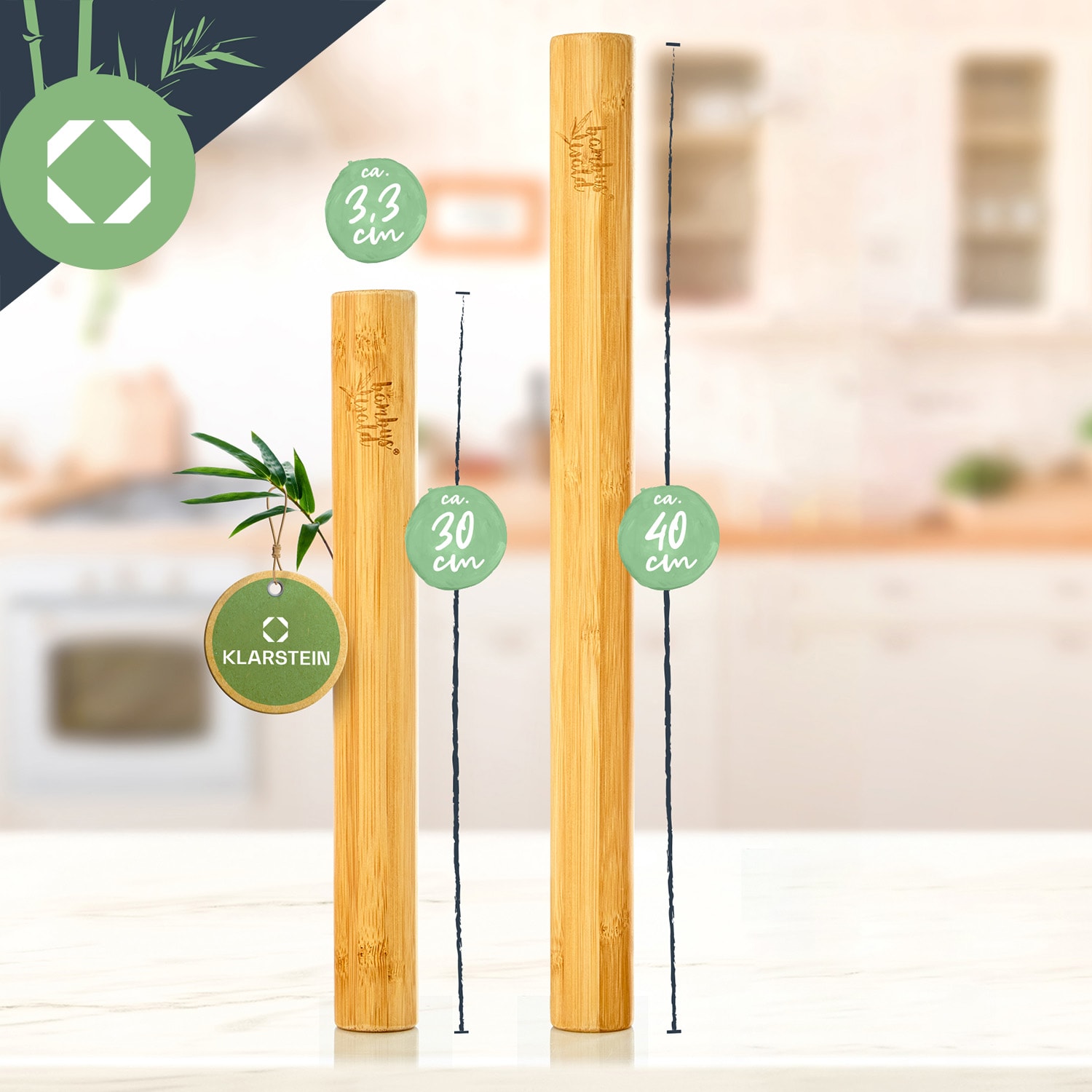 So súpravou 2 valčekov na cesto od Klarstein bambuswaldu si môžeš sám pripraviť vynikajúce cestovinové špeciality a upiecť si rozmanité pochúťky! Tradičné kuchynské valčeky sú vyrobené z masívneho a neošetreného bambusového dreva a majú rozličnú dĺžku. Ekologické valčeky na cesto sedia pevne v ruke a dajú sa bez námahy použiť na prípravu tortových korpusov, keksíkov, sušienok, domácej pizze, cestovín, taštičiek alebo cestovinových plátkov na lazane.