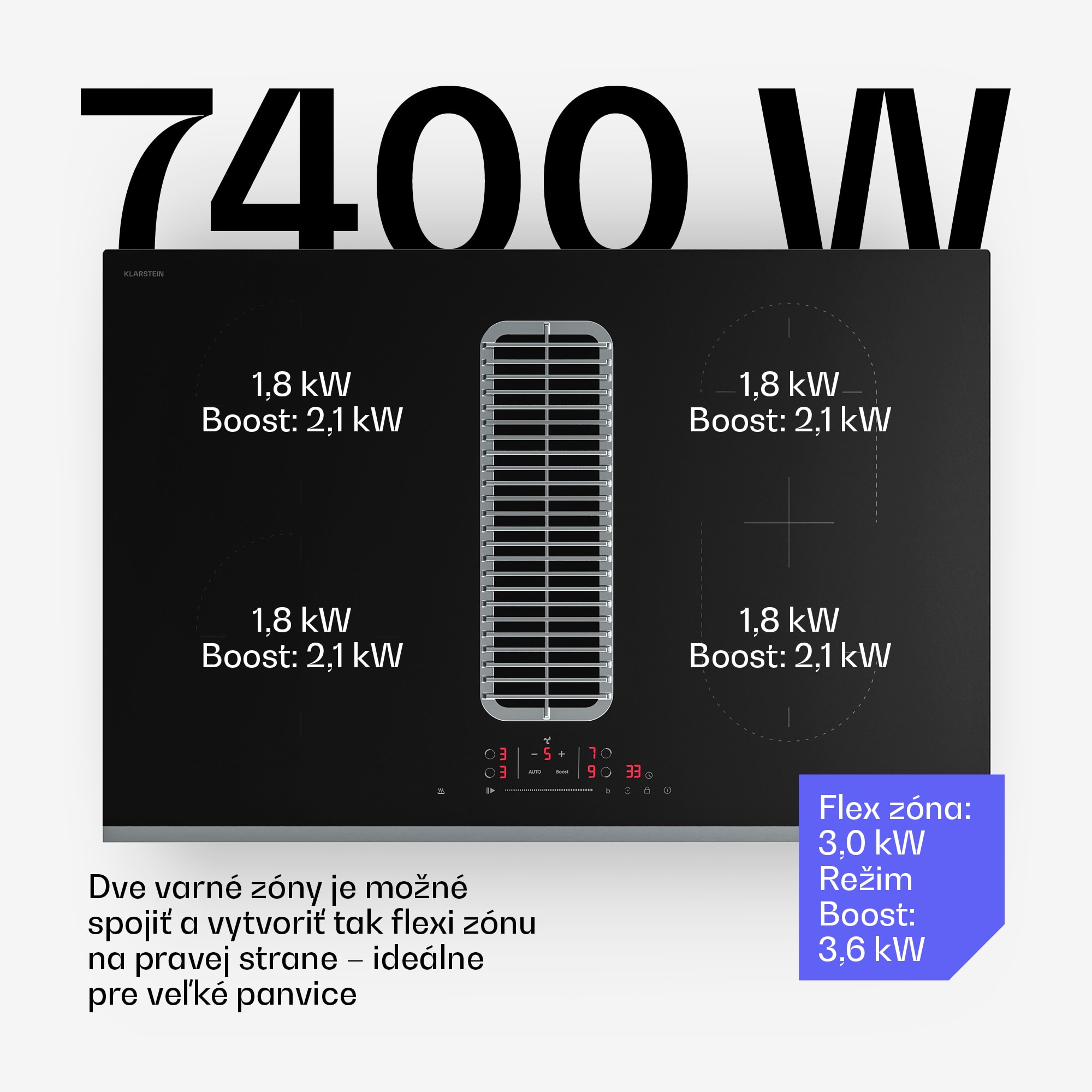 Indukčná varná doska Klarstein Verosteel s integrovaným digestorom kombinuje minimalistický dizajn s vysokým výkonom a energeticky úspornou technológiou. Vďaka elegantnému spojeniu lesklého čierneho skla a povrchu z nehrdzavejúcej ocele kombinuje vysoko kvalitné a odolné materiály s ľahko čistiteľným povrchom. Ako súčasť dizajnovej série Verosteel stelesňuje táto indukčná varná doska minimalizmus, pokoj a čistú geometriu, vďaka čomu sa stáva prirodzeným stredobodom každej kuchyne. Štyri výkonné a kvalitné indukčné varné zóny s celkovým výkonom až 8400 W v režime Boost a integrovaný digestor s maximálnym prietokom vzduchu 590 m³/h zaručujú nerušený zážitok z varenia. Vďaka dotykovému posuvníku sa varná doska ľahko a intuitívne obsluhuje a jej bezpečnú prevádzku zaručuje detská poistka a ukazovateľ zvyškového tepla. Vďaka funkcii ThermoRecall sa indukčná varná doska po prerušení, napríklad v dôsledku integrovaného časovača, automaticky vráti na posledné použité nastavenie teploty. Detekcia hrncov uľahčuje varenie tým, že zabezpečuje, aby sa varná zóna aktivovala len vtedy, keď sa používa vhodný hrniec alebo panvica. Zabraňuje tiež zbytočnému zahrievaniu povrchu varnej dosky, keď na nej nie je žiadna panvica. Chceli by ste si zariadiť celú kuchyňu jednotným spôsobom s jednoduchou eleganciou? Objavte všetky naše spotrebiče Verosteel a vytvorte si sofistikovaný a harmonický kuchynský zážitok!