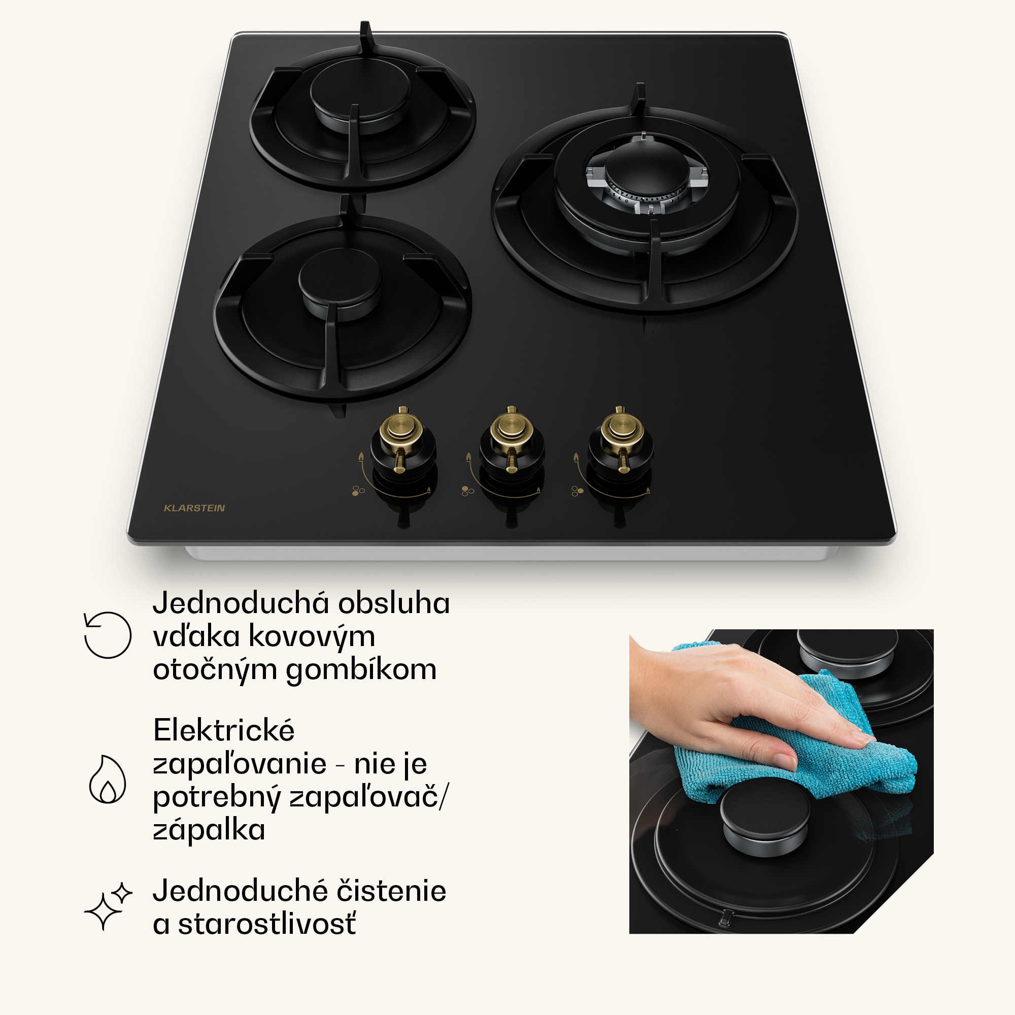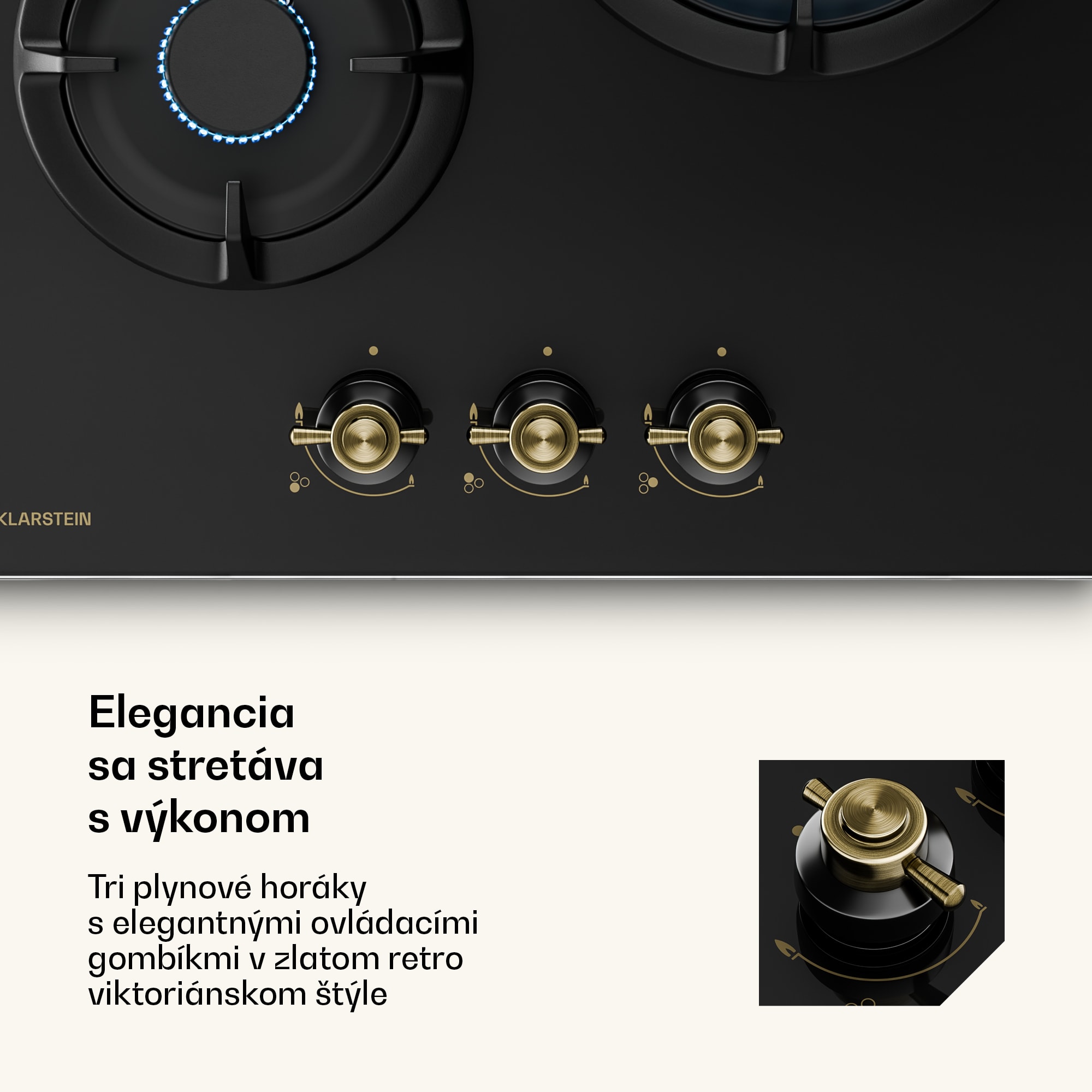 Plynová varná doska Klarstein Victoria kombinuje dizajn inšpirovaný retro štýlom s vysokým výkonom a modernou technológiou. Vďaka detailom inšpirovaným viktoriánskym štýlom vnesie do vašej kuchyne istú vintage atmosféru. Táto varná doska, ktorá je súčasťou dizajnového radu Victoria, stelesňuje nadčasový šarm a je prirodzeným stredobodom každej kuchyne.Tri výkonné, vysokokvalitné horáky s celkovým výkonom 6050 W zaručujú plynulé varenie.Plynová varná doska sa vďaka kovovým gombíkom ľahko používa a vďaka elektrickému zapaľovaniu nie sú potrebné zápalky ani zapaľovač.Varnú dosku je možné prevádzkovať na LPG aj zemný plyn. Má tiež ochranu proti zlyhaniu plameňa a ľahko sa čistí.Chceli by ste si zariadiť celú kuchyňu s eleganciou inšpirovanou viktoriánskym štýlom? Objavte všetky naše spotrebiče Victoria a vytvorte si nadčasovú, harmonickú kuchyňu!