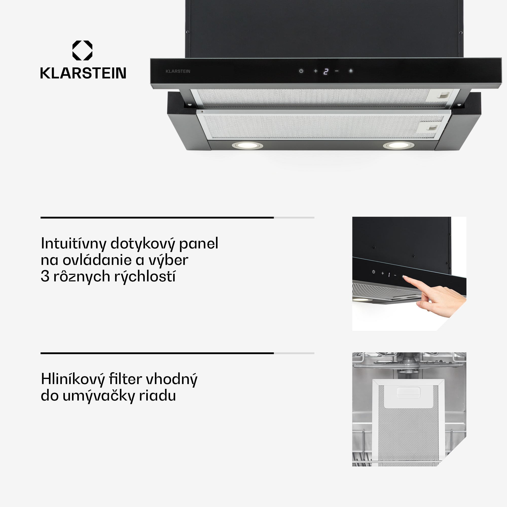 O svieži priechod vzduchu v malých kuchynských linkách sa postará Klarstein Vinea zabudovaný digestor, ktorý vďaka šikovnej konštrukcii zdvojnásobuje jedným hmatom svoj rozsah použiteľnosti. Vinea rozvíja svoju účinnosť obzvlášť v kuchynských výklenkoch a malých kuchyniach, pretože tento plochý digestor je možné prakticky a nekomplikovane namontovať na závesné skrinky alebo regále. Jedným hmatom vysuniete aj druhý filter mastnôt a zdvojnásobíte tak plochu. Zápachy z jedla, dym a výpary budú rýchlo a účinne odsaté s maximálnym výkonom 610 m3/h. Pritom je možné regulovať výkon odsávania digestora troma výkonnostnými stupňami. Vďaka jeho energeticky úspornej konštrukcii vykonáva zariadenie Vinea svoje služby úsporne a bez hluku. Na ochranu vnútra digestora a odpadového kanálu pred nečistotami disponuje Vinea dvoma vymeniteľnými hliníkovými filtrami mastnôt vhodnými do umývačky riadu. Okrem šikovnej konštrukcie a variabilných možností montáže boduje Klarstein Vinea s ďalšou vlastnosťou: vďaka alternatívne dostupným filtrom s aktívnym uhlím je možné prestavenie na režim s vnútornou cirkuláciou vzduchu. Pre hlboké pohľady do tajomstiev kuchyne disponuje vysúvací digestor dvoma zapínateľnými halogénovými svetlami. Postará sa o príjemnú vôňu pri varení: Klarstein Vinea zabudovateľný digestor. Dostupné farby: čierna, strieborná (produkt 10031682).