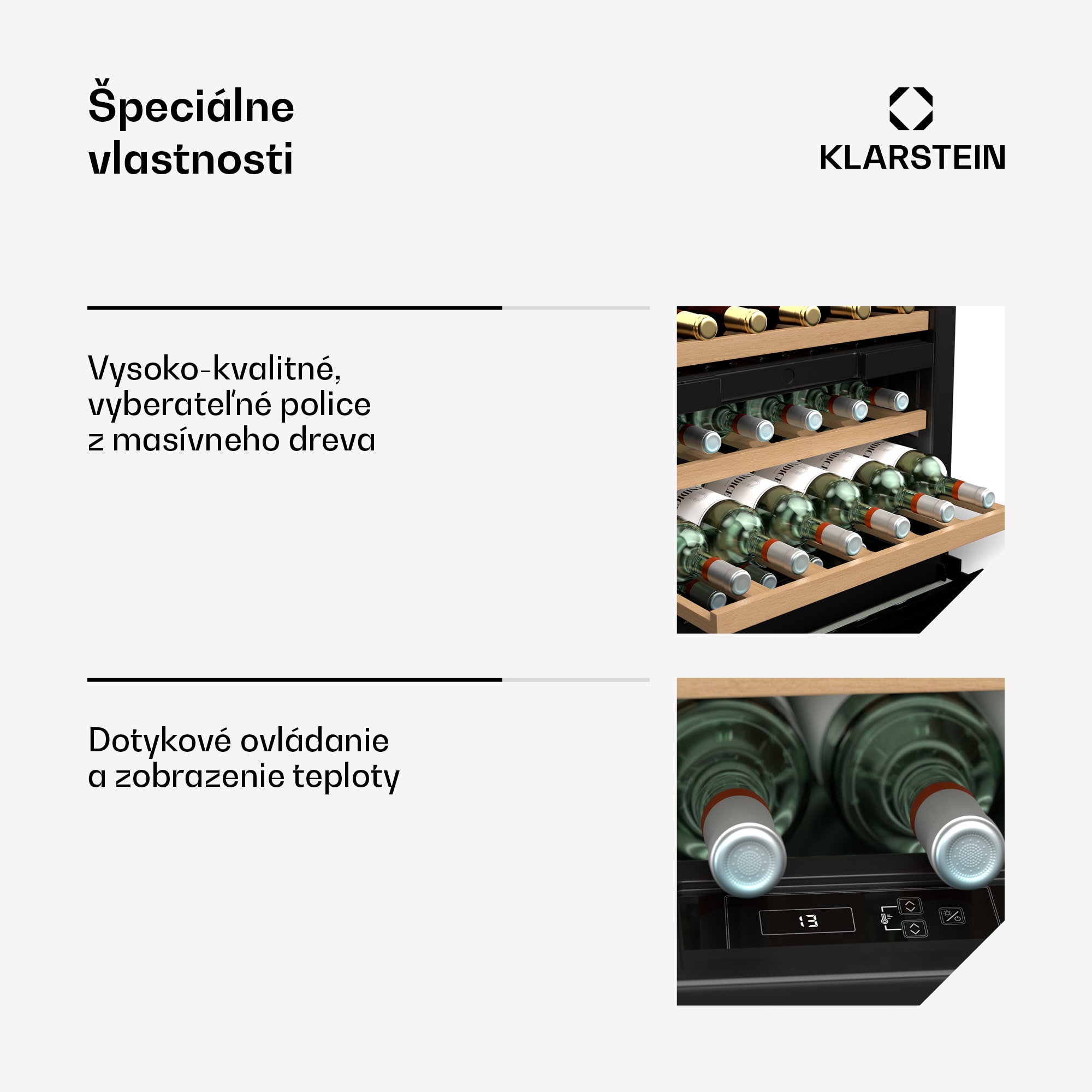 Vinotéka Klarstein Vinsider 30 Built-In Uno je ideálnou voľbou pre milovníkov vína, ktorí hľadajú elegantné a funkčné riešenie na uskladnenie svojich obľúbených vín. Táto vstavaná vinotéka ponúka nielen štýlový doplnok do vašej kuchyne, ale aj optimálnu ochranu a ideálnu teplotu na uskladnenie až 30 fliaš.Vďaka dvojzónovej technológii chladenia možno vinotéku Klarstein Vinsider 30 Built-In Duo dokonale nastaviť na dve rôzne teploty – ideálne pre dva rôzne druhy vína, napríklad červené a biele víno. Biele LED osvetlenie a sklo s UV ochranou zabezpečujú nielen atraktívnu prezentáciu, ale aj ochranu vašich vín pred škodlivým UV žiarením. Masívne drevené police majú nielen atraktívny vzhľad, ale aj tlmia vibrácie, aby sa zabránilo zbytočnému pohybu a zachovala sa kvalita vašich vín.Uistite sa, že je chladnička na víno správne nainštalovaná a pravidelne čistená, aby sa zabezpečil jej optimálny výkon.Zažite dokonalú kombináciu štýlu a funkčnosti – doprajte si vinotéku Klarstein Vinsider 30 Built-In Uno a skladujte svoje vína na najvyššej úrovni!