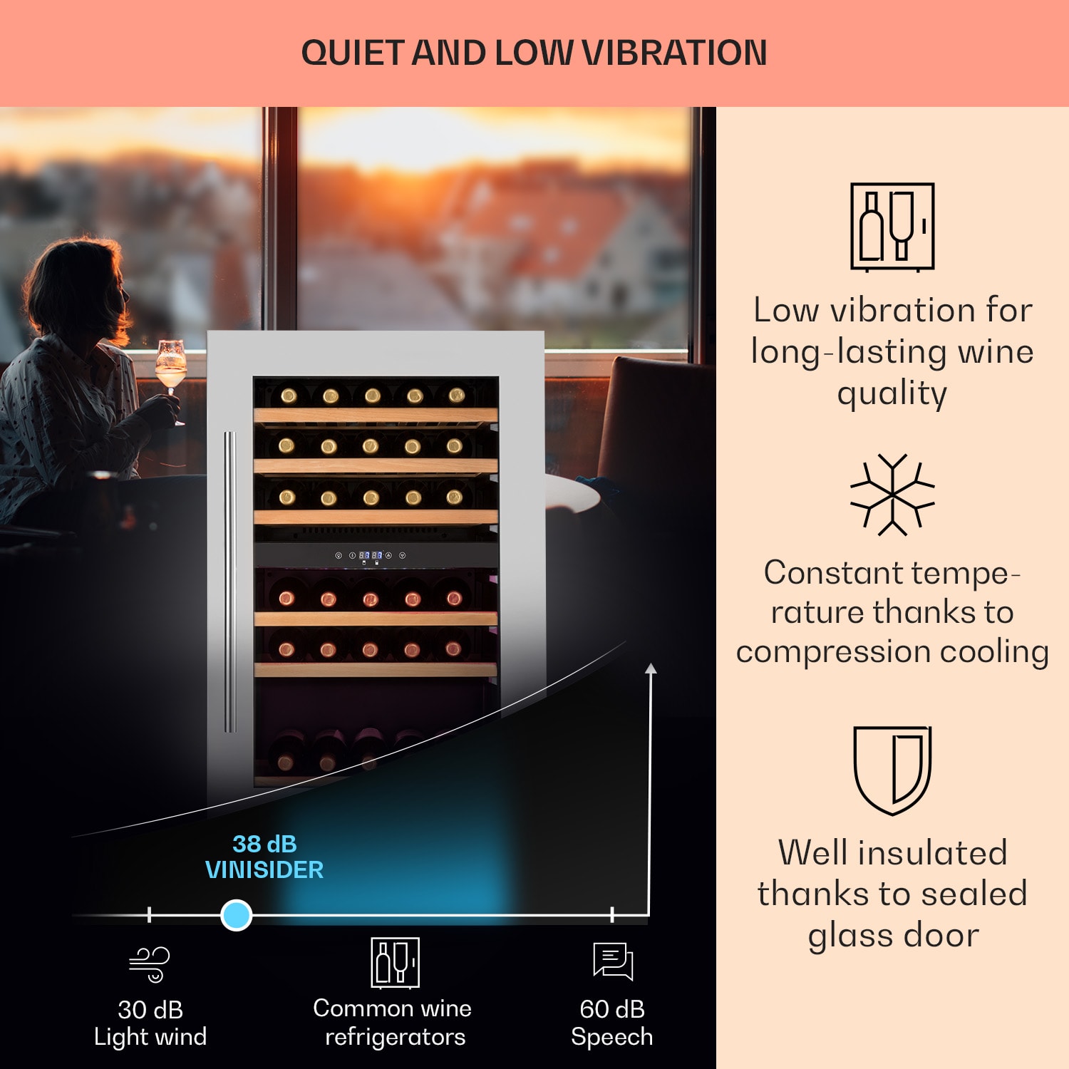 Klarstein Vinsider 35D, vstavaná vinotéka, 128 l, 41 fliaš, 2 zóny –Kúpiť