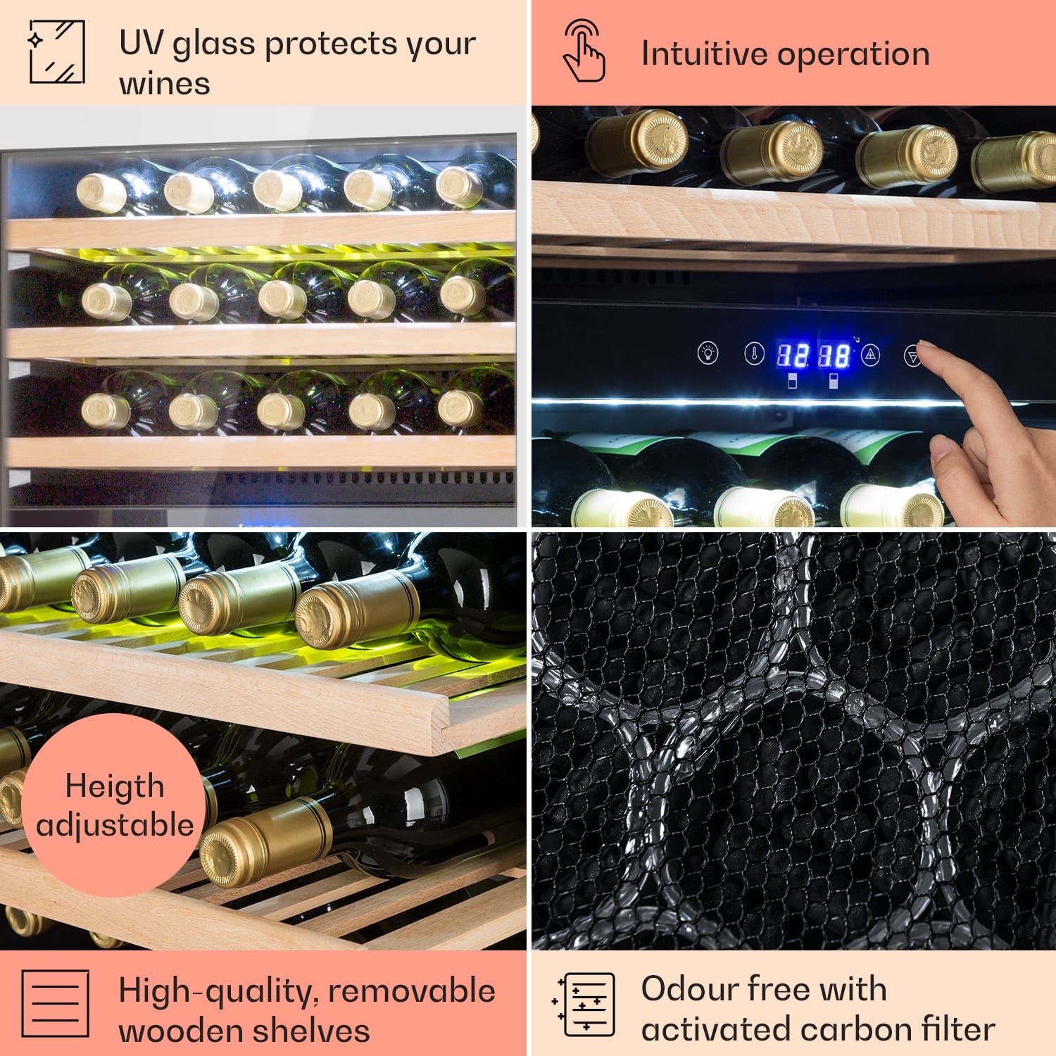 Klarstein Vinsider 35D, vstavaná vinotéka, 128 l, 41 fliaš, 2 zóny