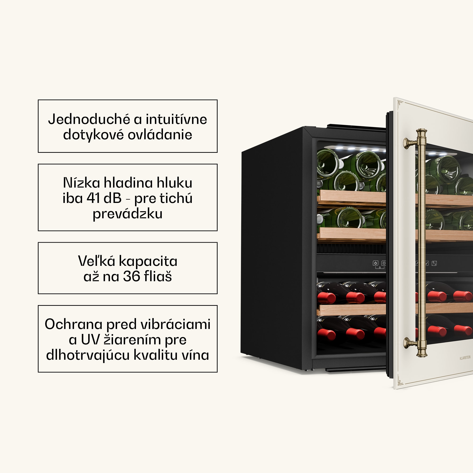 Klarstein Vinsider Victoria 36 chladnička na víno, 36 fliaš, dotyková, UV ochrana, LED, tichá, 3 police –Kúpiť