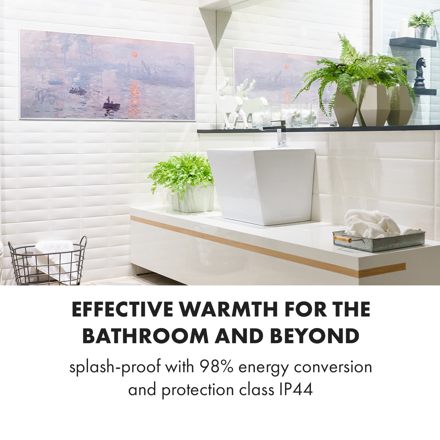 So smart technológiou na vytvorenie príjemného tepla: infračervený ohrievač Klarstein Wonderwall Air Art Smart prináša teplo do každej miestnosti veľmi efektívnym a priestorovo úsporným spôsobom a zároveň prináša so svojím povrchom s potlačeným grafickým dizajnom do miestnosti aj nový lesk a farby.Infračervený ohrievač Klarstein Wonderwall Air Art Smart predstavuje revolúciu vo vykurovaní vďaka modernej technológii. Super plochý vykurovací panel môžeš zavesiť ako Infrapanel obraz priamo na stenu, kde okamžite začne vykonávať svoju zohrievaciu službu mimoriadne priestorovo úsporne. So svojím výkonom 700 W využíva vďaka technológii IR ComfortHeat princíp slnečného tepla: namiesto pomalého zohrievania vzduchu vydáva príjemné infračervené žiarenie, ktoré priamo zohrieva osoby a predmety na ploche približne 14 m². Tvoj nový elektrický ohrievač je pritom mimoriadne energeticky efektívny: celých 98 % spotrebovanej energie sa premení na tepelné žiarenie. A pretože zariadenie Wonderwall pracuje len s tepelným žiarením, nevíri prach ani nevytvára hluk – preto je ideálnou voľbou pre alergikov a na použitie v priestoroch citlivých na hluk, ako sú kancelárie alebo spálne. Vďaka svojmu dizajnovému povrchu s grafickou potlačou je nielen zdrojom tepla, ale aj dekoratívnym pútavým doplnkom každej miestnosti.Teraz ešte inteligentnejší: nové infračervené ohrievače Klarstein Wonderwall Air Art Smart sa dajú pripojiť k miestnej sieti WiFi a potom sa dajú ovládať odkiaľkoľvek pomocou aplikácie Klarstein App Experience. Nemusíš ani chytiť svoj smartfón alebo tablet, pretože s integrovaným hlasovým ovládaním môžeš úplne jednoducho zadávať hlasové pokyny jednému zariadeniu alebo viacerým zariadeniam súčasne prostredníctvom Alexy alebo Google. Vykurovací panel sa dá, samozrejme, ovládať aj kompletne manuálne na zariadení.S termostatom a premyslenými funkciami, ako sú funkcia automatického vypnutia a detekcia otvoreného okna OpenWindow Detection, splní infračervený ohrievač aj náročné požiadavky. Nastaviteľný týždenný časový spínač umožňuje programovanie časov kúrenia na každý deň týždni. Vďaka svojmu plochému dizajnu, rýchlemu tepelnému výkonu a priestorovo úspornej montáži na stenu je ohrievač predurčený predovšetkým na použitie v kúpeľni. Preto je zariadenie Wonderwall Air Art Smart s triedou ochrany IP44 úplne chránené proti striekajúcej vode.Budúcnosť vykurovacej techniky: infračervený ohrievač Klarstein Wonderwall Air Art Smart.