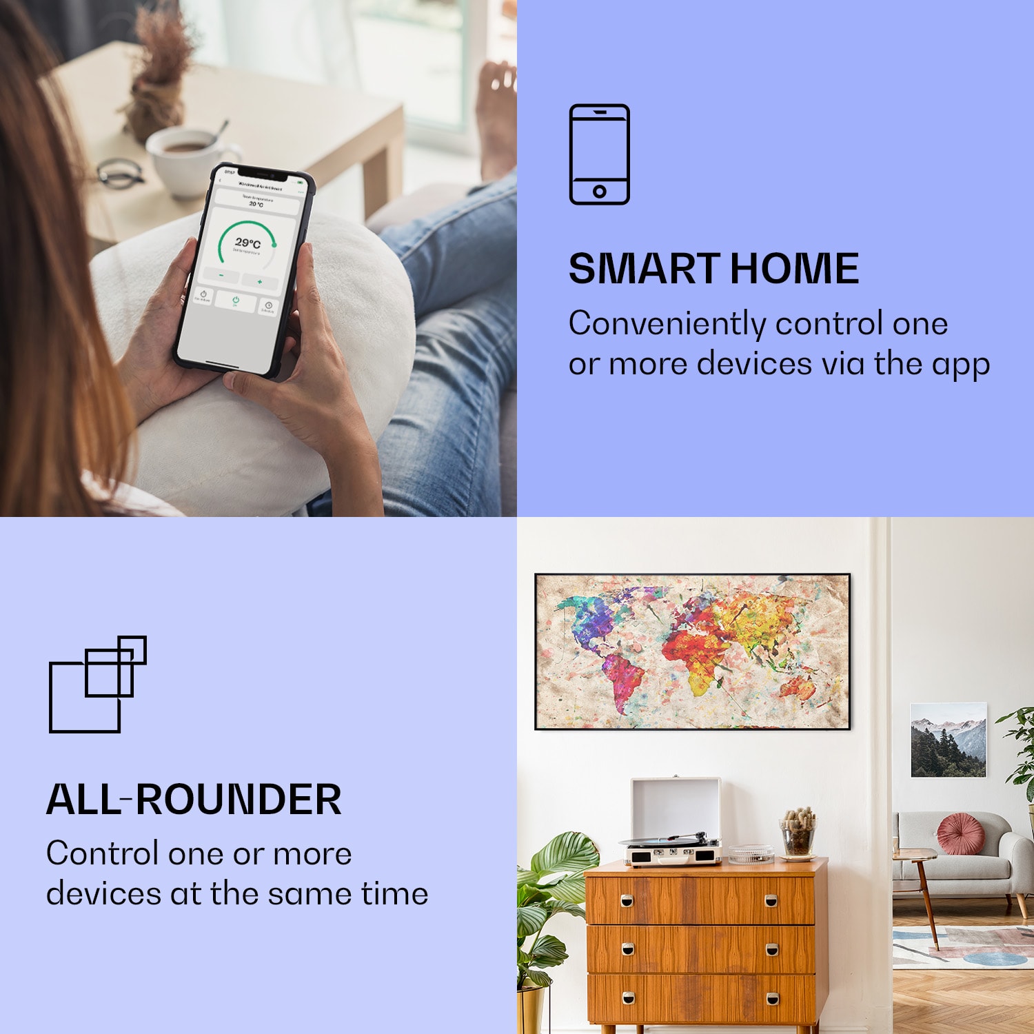 Klarstein Wonderwall Air Art Smart, infračervený ohrievač, 120 x 60 cm, 700 W, farebná mapa –Kúpiť