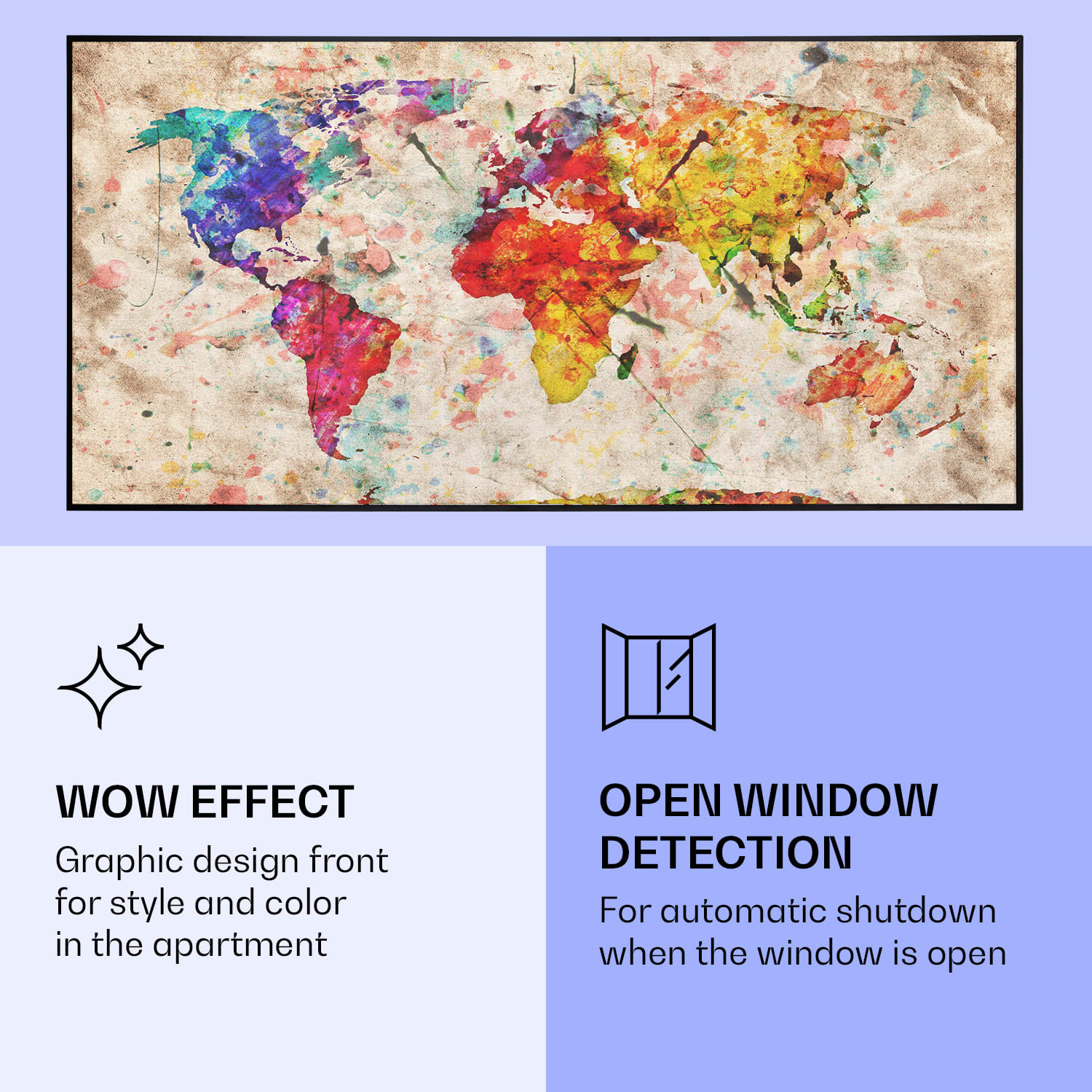 Klarstein Wonderwall Air Art Smart, infračervený ohrievač, 120 x 60 cm, 700 W, farebná mapa