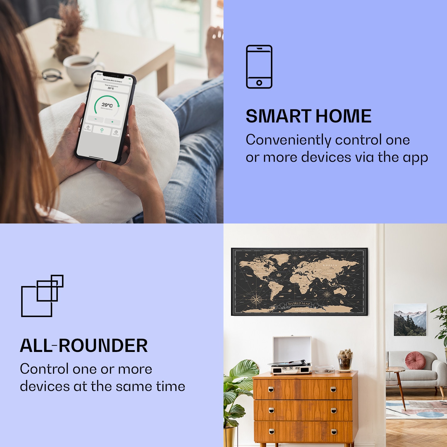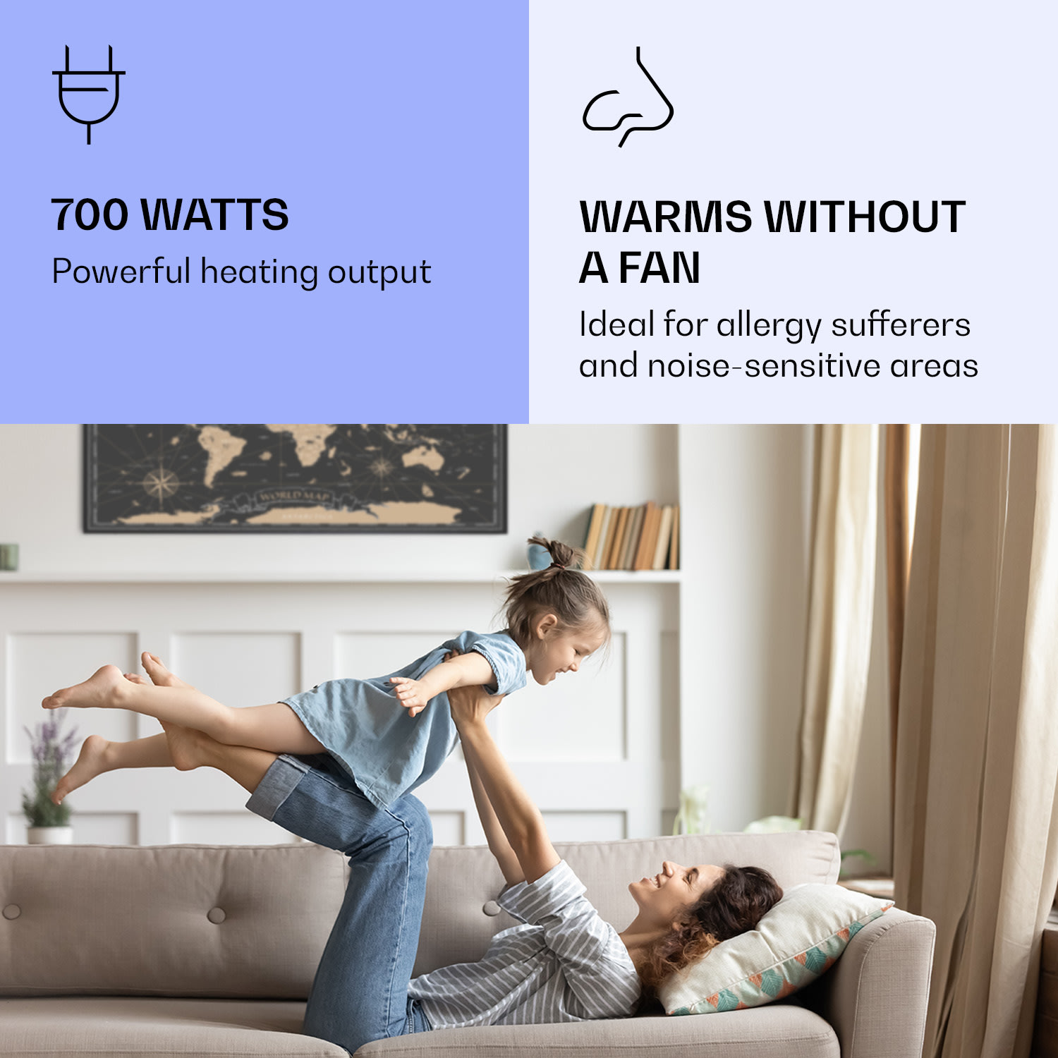Infračervený ohrievačKlarstein Air Art Smart kombinuje vysoko efektívny vykurovací výkon s pôsobivým dizajnom a najnovšou technológiou. Prináša príjemné teplo a tiež nový lesk a farbu do každej miestnosti a pritom je energeticky veľmi efektívny a ekologický vďaka svojej infračervenej technológii. So svojím silným výkonom 700 W a vďaka technológii IR ComfortHeat šíri k ľudskej pokožke veľmi príjemné teplo, ktoré je vyžarované cielene na osoby v blízkosti ohrievača. Ovládaj veľmi jednoducho pomocou smartfónu, diaľkového ovládača alebo ovládacieho panela jeden ohrievač alebo viacero ohrievacích zariadení. Tento Infrapanel obraz sa stane štýlovým doplnkom každej miestnosti. Vitaj v budúcnosti vykurovacej techniky: infračervený ohrievačKlarstein Air Art Smart.