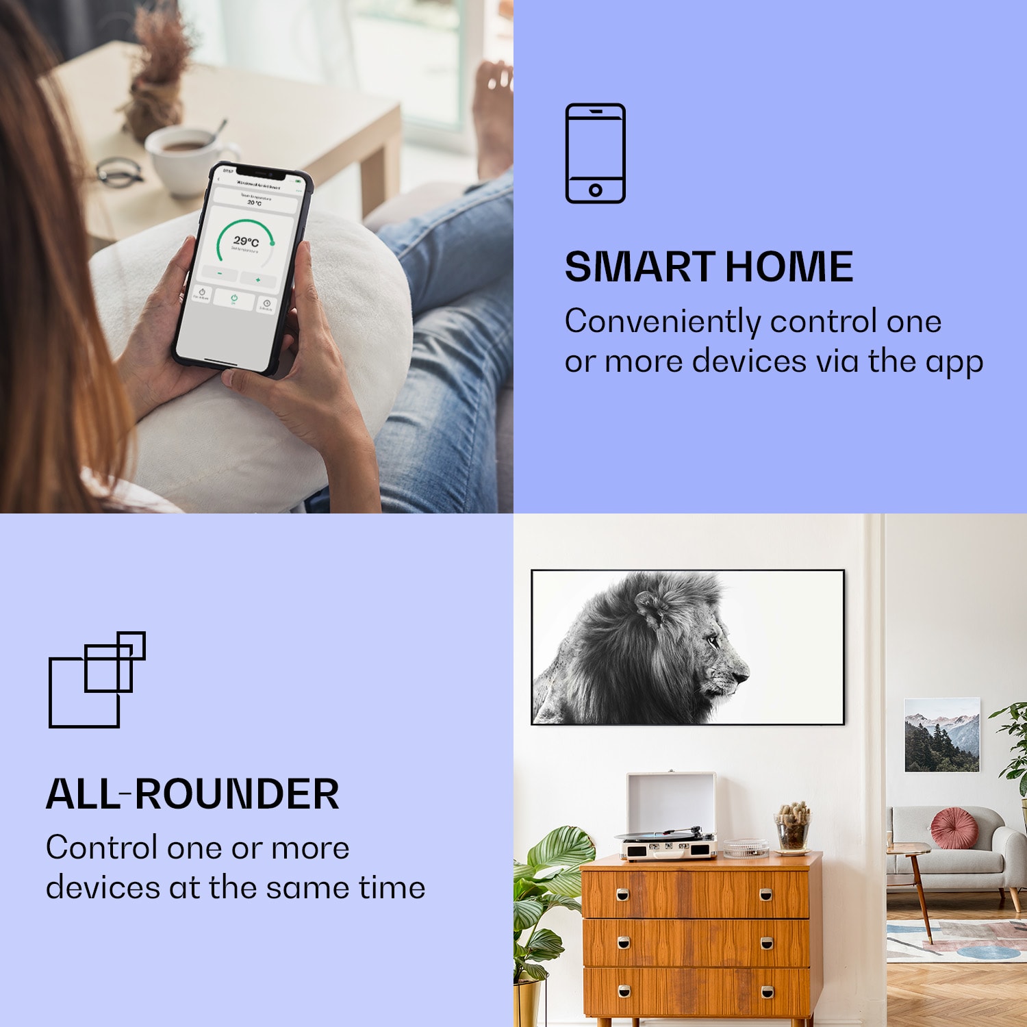 Klarstein Wonderwall Air Art Smart, infračervený ohrievač, 60 x 120 cm, 700 W, lev –Kúpiť