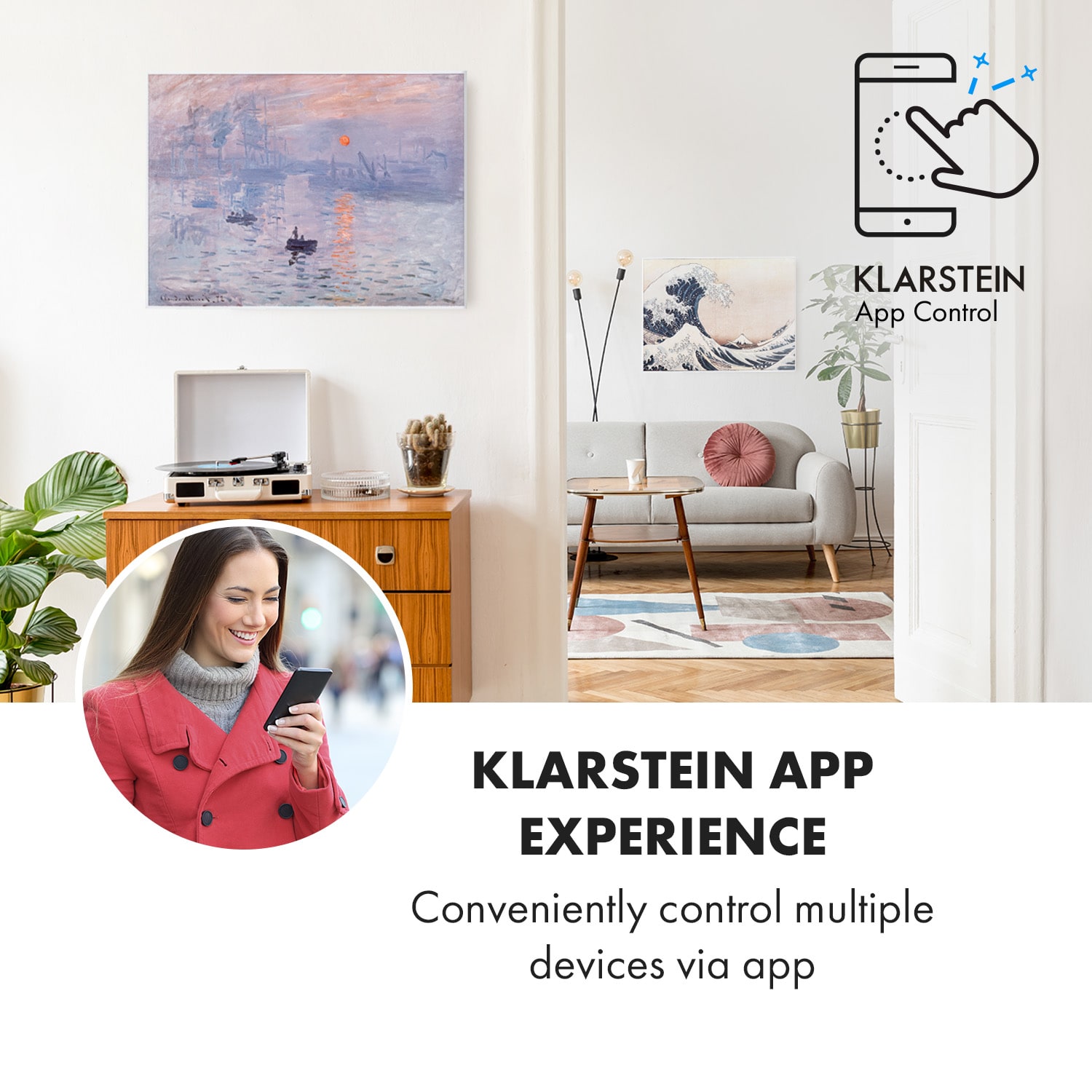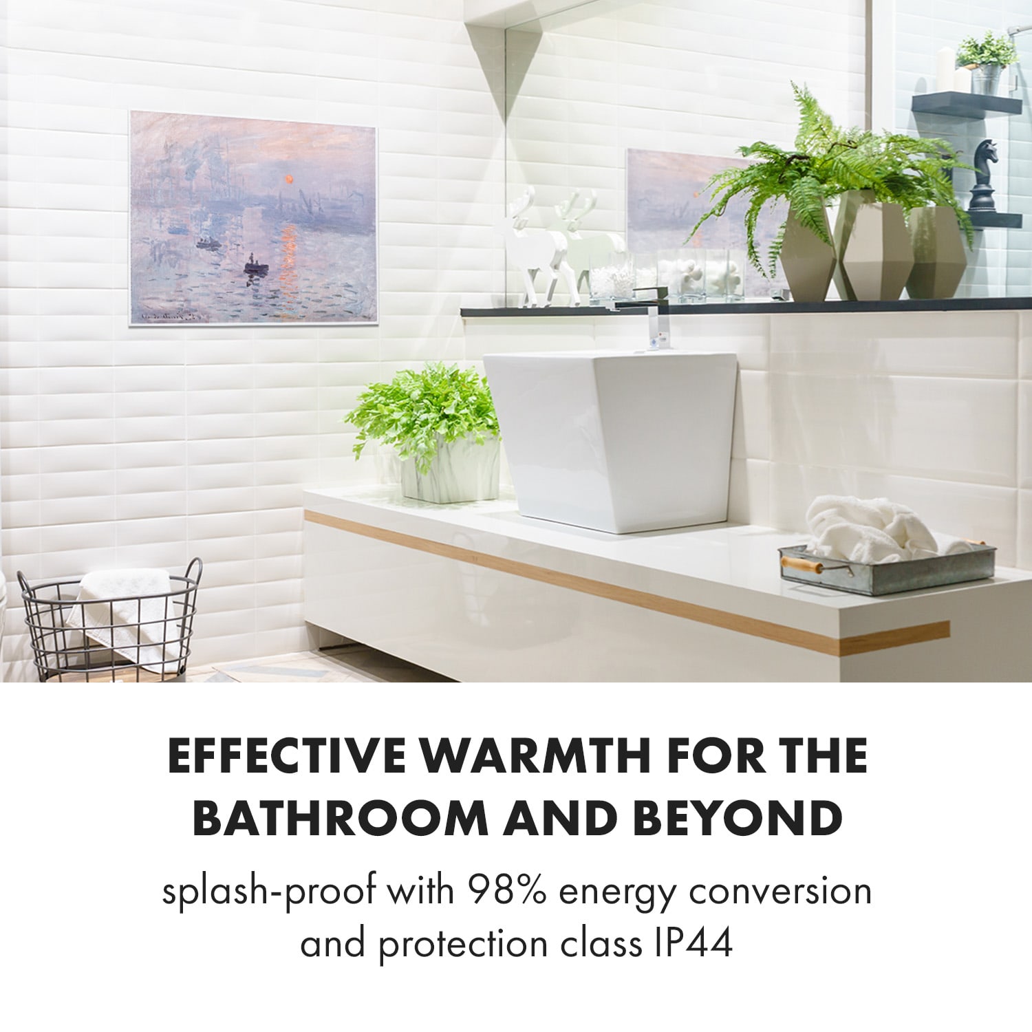 Infračervený ohrievač Klarstein Wonderwall Air Art Smart kombinuje vysoko efektívny vykurovací výkon s pôsobivým dizajnom a najnovšou technológiou. Prináša príjemné teplo a tiež nový lesk a farbu do každej miestnosti a pritom je energeticky veľmi efektívny a ekologický vďaka svojej infračervenej technológii.Začni vo svojej domácnosti revolúciu vo vykurovaní s infračerveným ohrievačom Klarstein Wonderwall Air Art Smart. Veľký vykurovací panel s rozmermi 80 x 60 cm je možné zavesiť priamo na stenu a vďaka svojej hĺbke 5 cm je sotva väčší ako zarámovaný obraz. Tento infrapanel obraz so silným výkonom 500 W a vďaka technológii IR ComfortHeat šíri k ľudskej pokožke veľmi príjemné teplo, ktoré je vyžarované cielene na osoby v blízkosti ohrievača. Vďaka infračervenej technológii je vykurovací panel mimoriadne energeticky efektívny a ekologický: celých 98 % výkonu sa premieňa na tepelné žiarenie.S termostatom a premyslenými funkciami, ako sú funkcia automatického vypnutia a detekcia otvoreného okna OpenWindow Detection, splní infračervený ohrievač aj tie najnáročnejšie požiadavky. Nastaviteľný týždenný časovač je mimoriadne šikovný, umožňuje programovanie časov kúrenia na každý deň týždni. Ďalší pokrok v nekomplikovanom a príjemnom zážitku tepla ti poskytne aplikácia Klarstein App Experience. Ovládaj jeden ohrievač alebo viacero ohrievačov úplne jednoducho pomocou smartfónu alebo dokonca svojím hlasom. Ovládanie pomocou tlačidiel je, samozrejme, tiež možné. Zariadenie Wanderwall pracuje bez ventilátora, nevíri teda prach, a preto je toto vykurovacie zariadenie ideálnou voľbou pre alergikov. Vďaka svojmu super plochému dizajnu, rýchlemu tepelnému výkonu a priestorovo úspornej nástennej montáži je ohrievač obzvlášť vhodný na použitie v kúpeľni. Preto je zariadenie Wonderwall Air Art Smart s triedou ochrany IP44 úplne chránené proti striekajúcej vode.Budúcnosť vykurovacej techniky: infračervený ohrievač Klarstein Wonderwall Air Art Smart.