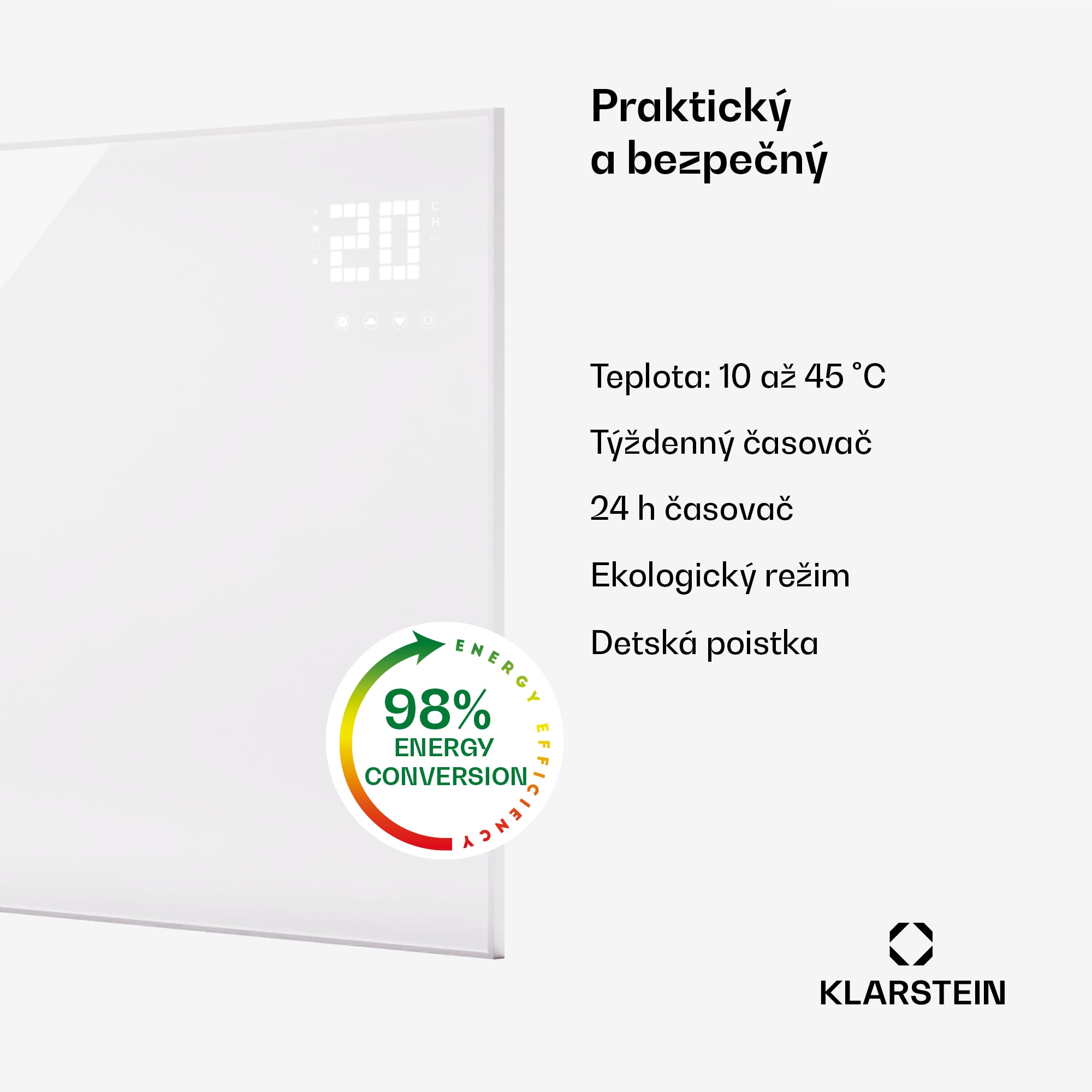 Najnovšia technológia pre príjemné teplo: Infračervený ohrievač Klarstein Wonderwall Smart Bornholm prináša príjemné teplo do každej miestnosti vysoko efektívnym a priestorovo úsporným spôsobom.Infračervený ohrievač Wonderwall prináša revolúciu vo vykurovaní pomocou moderných technológií. Extrémne plochý, nenápadný vyhrievací panel je možné zavesiť priamo na stenu a svoju úlohu tak plní mimoriadne priestorovo úsporným spôsobom. Vďaka IR ComfortHeat využíva princíp solárneho tepla: namiesto pomalého ohrevu vzduchu vyžaruje príjemné infračervené tepelné lúče, ktoré priamo cielene ohrievajú ľudí a predmety v dosahu. Váš nový elektrický ohrievač je mimoriadne energeticky účinný: celých 95 % spotrebovanej energie sa premení na tepelné lúče a nedochádza k rozvíreniu prachu ani hluku. Veľký LED displej, ktorý sa zobrazí po stlačení tlačidla, je obzvlášť praktický a uľahčuje obsluhu alebo ovládanie všetkých nastavení. Teraz ešte inteligentnejšie: Nové infražiariče Klarstein Wonderwall Smart je možné pripojiť k lokálnej WiFi sieti a následne ich nielen ovládať odkiaľkoľvek cez Klarstein App Experience, ale sú aj plne kompatibilné s Alexa. Tento elektrický infražiarič je skutočne revolučným riešením pre moderné vykurovanie.