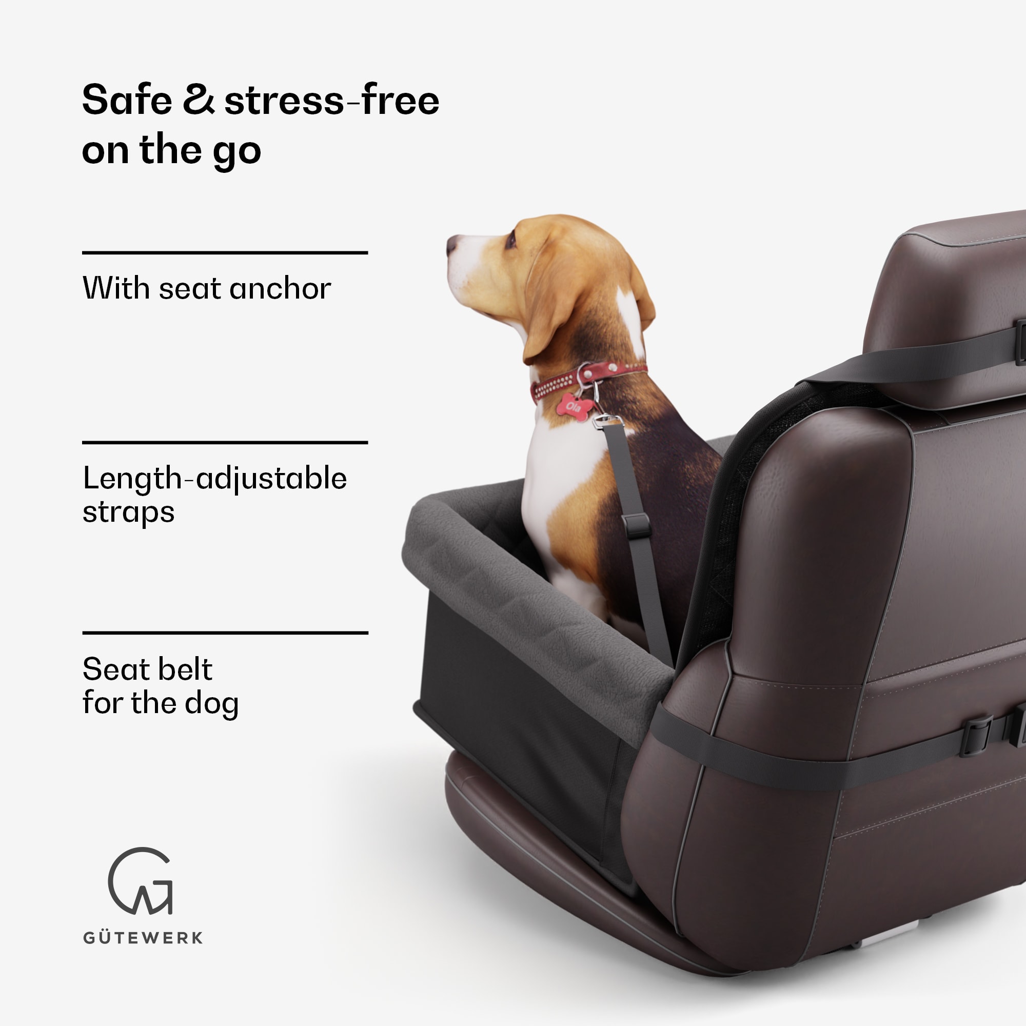 Spolu vredu! V sedačke pre psa Gütewerk Rocky pre predné sedadlo spolujazdca môže váš najlepší priateľ sedieť hneď vedľa vás.Autosedačka pre psa Rocky od Gütewerk je ideálnou alternatívou k objemnému prepravnému boxu. Flexibilný kôš je vyrobený z pevného polyesteru, odolného proti poškriabaniu a vode a v prípade potreby sa ľahko čistí. Okrem toho môžete vložku sedačky samostatne vybrať a hrubé nečistoty priamo vytriasť alebo dokonca vyprať v práčke. Sedačku pre psa je možné rýchlo a bezpečne umiestniť na sedadlo spolujazdca vo vašom aute. Ukotvenie sedadla, ako aj dva popruhy, ktoré sú pripevnené k opierke hlavy a operadlu sedadla a protišmyková úprava zaručujú bezpečnú prepravu vášho štvornohého miláčika. Integrovaný bezpečnostný pás zaručuje ešte väčšiu mieru bezpečnosti. Základňu a vložku možno ľahko spojiť pomocou suchých zipsov. Ak ste na ceste sami, môžete Rocky zložený uložiť do batožinového priestoru, aby ste ušetrili miesto.Robustná, flexibilná a bezpečná: autosedačka pre psov Rocky od Gütewerk .