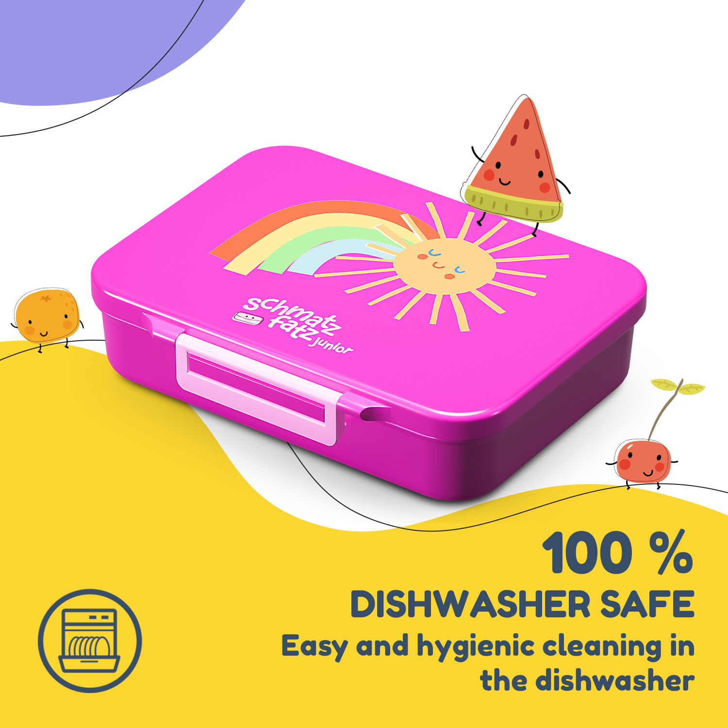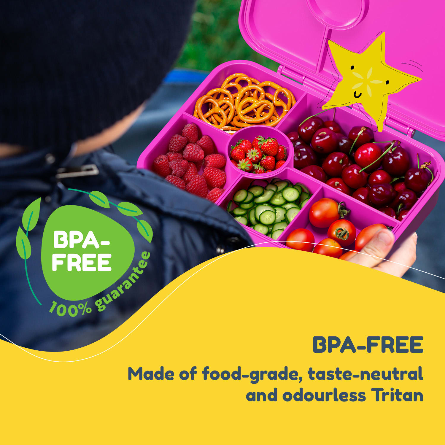 Či už vaše dieťa vyráža do škôlky, školy alebo na výlet, desiatový box Schmatzfatz Lite sa postará o to, aby každé občerstvenie zostalo čerstvé, chutné a prehľadne usporiadané počas celého dňa.Vďaka viacerým oddeleným priehradkám môžete jedlo jednoducho roztriediť – ovocie zostane svieže, syr si zachová svoju chuť a pečivo sa nepremočí. Vnútorný uzáver a vzduchotesné tesnenie zabezpečia, že ani hustejšie potraviny ako jogurt či jablkové pyré sa nevylejú. Box je vyrobený z ľahkého a odolného Tritanu bez BPA, čo zaručuje bezpečné a zdravotne nezávadné používanie. V porovnaní s bežnými desiatovými boxmi váži o tretinu menej, takže nezaťaží školský batoh ani tých najmenších.Údržba je rýchla a jednoduchá – vnútro boxu môžete vyčistiť ručne, vonkajší obal stačí utrieť vlhkou handričkou. Vďaka kvalitnému spracovaniu box vydrží aj pri každodennom používaní.