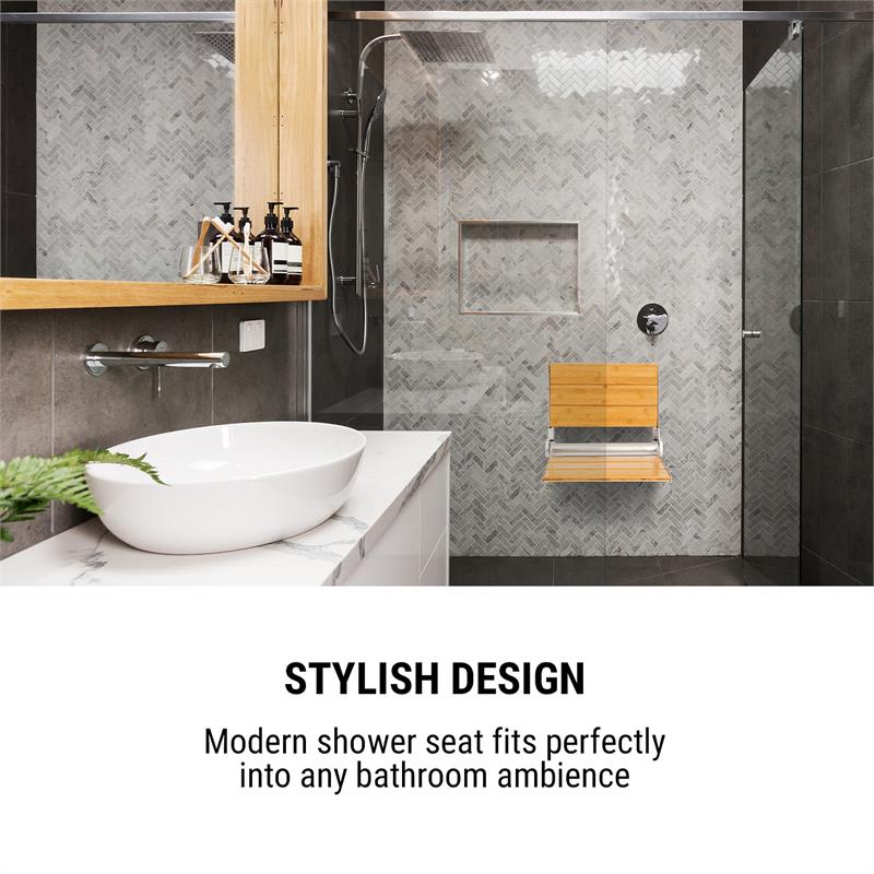 Pre všetkých, ktorí chcú bezpečne relaxovať a umývať sa. Sedadlo do sprchy Arielle Deluxe od spoločnosti oneConcept je ideálnym riešením pre starších ľudí, tehotné ženy a ľudí so zraneniami.Sedadlo do sprchy má pohodlnú plochu sedadla aj operadlo z bambusu a po použití ho môžete priestorovo úsporne sklopiť nahor. Vďaka ľahkému rámu z hliníkovej zliatiny presvedčí sedadlo nielen moderným a štýlovým dizajnom, ale vďaka dodanej montážnej sade aj veľmi rýchlou inštaláciou. Napriek nízkej hmotnosti je extrémne stabilné a vydrží zaťaženie až do 160 kg.Pohodlné, štýlové a ľahko upevniteľné: sedadlo do sprchy oneConcept Arielle Deluxe sa postará o maximálnu relaxáciu a pocit bezpečia.