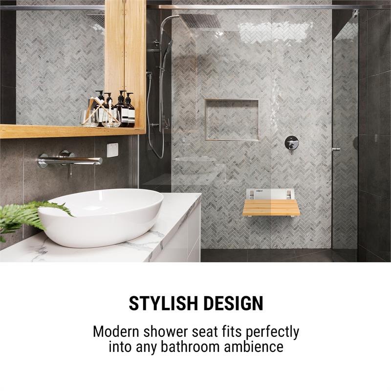 Pre všetkých, ktorí chcú bezpečne relaxovať a umývať sa. Sedadlo do sprchy Arielle od spoločnosti oneConcept je ideálnym riešením pre starších ľudí, tehotné ženy a ľudí so zraneniami.Sedadlo do sprchy má pohodlnú plochu sedadla z bambusu a po použití ho môžete priestorovo úsporne sklopiť nahor. Vďaka ľahkému závesu z hliníka presvedčí sedadlo nielen moderným a štýlovým dizajnom, ale vďaka dodanej montážnej sade aj veľmi rýchlou inštaláciou. Napriek nízkej hmotnosti je extrémne stabilné a vydrží zaťaženie až do 160 kg.Pohodlné, štýlové a ľahko upevniteľné: sedadlo do sprchy oneConcept Arielle sa postará o maximálnu relaxáciu a pocit bezpečia.