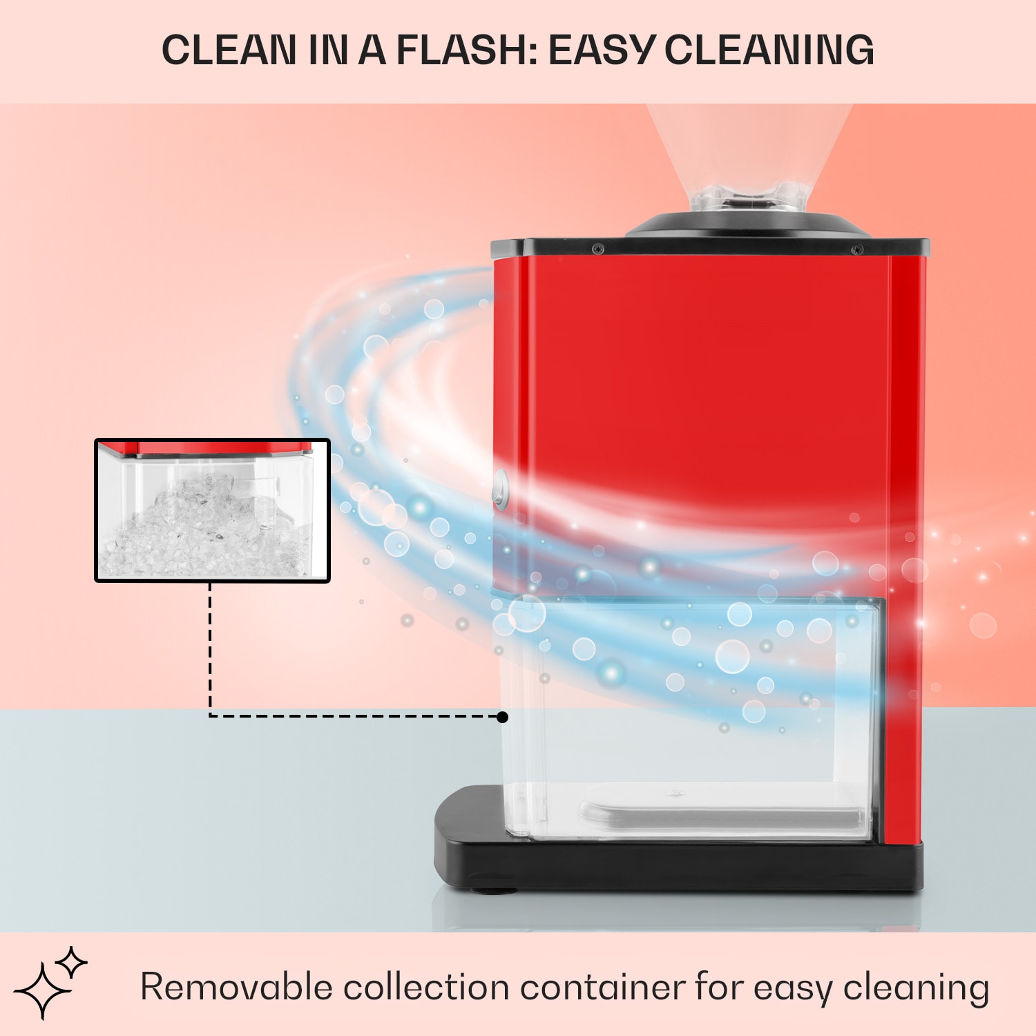 OneConcept Icebreaker, drvič ľadu, 15 kg/h, objem 3,5 l, zásobník na ľad, nehrdzavejúca oceľ, červený