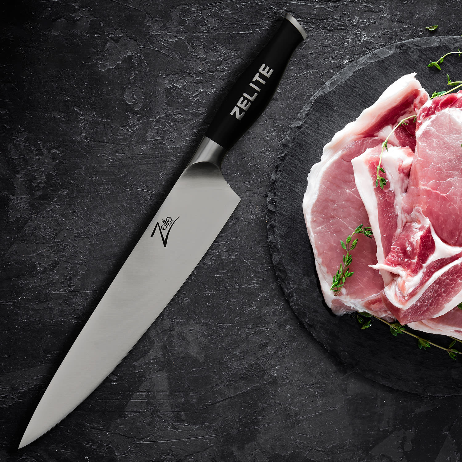 Dokonalé nože pre hobby kuchárov, profesionálov v kuchyni a všetkých, ktorí majú radi ostré nože! Séria nožov Zelite Infinity by Klarstein Comfort Pro kombinuje extrémnu ostrosť, vysokú kvalitu a jednoduchú manipuláciu s elegantným vzhľadom a zjednodušuje krájanie, sekanie alebo lúpanie. Čepele z kvalitnej nemeckej nehrdzavejúcej ocele od spoločnosti Thyssenkrupp sú tvrdé, flexibilné a ostré ako britva. Vďaka prechodu od čepele k záštite bez hrán a štrbín a tiež vďaka ergonomickej rukoväti s perfektným vyvážením sedia dobre v ruke a umožňujú dokonale presné krájanie.10″ nôž šéfkuchára Zelite Infinity by Klarstein Comfort Pro je veľmi efektívny kuchynský nástroj na krájanie, sekanie, rezanie či krájanie na kocky potravín ako sú mäso, ryby, ovocie, zelenina alebo syry. Extra dlhá čepeľ je ideálna na krájanie väčších kusov mäsa alebo ovocia, ako sú melóny. V štýle francúzskeho noža šéfkuchára je to praktický univerzálny nôž v kuchyni. Doplň svoje kuchynské nože alebo ho použi ako perfektný darček pre priateľov, ktorí radi varia.