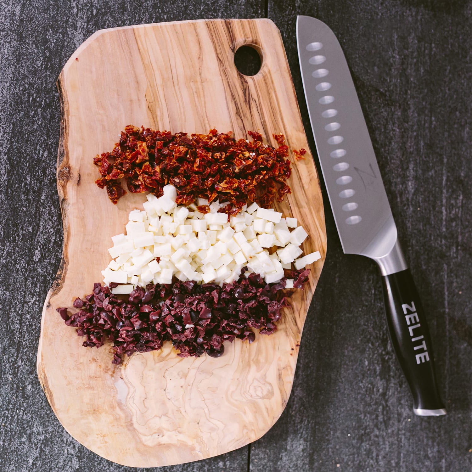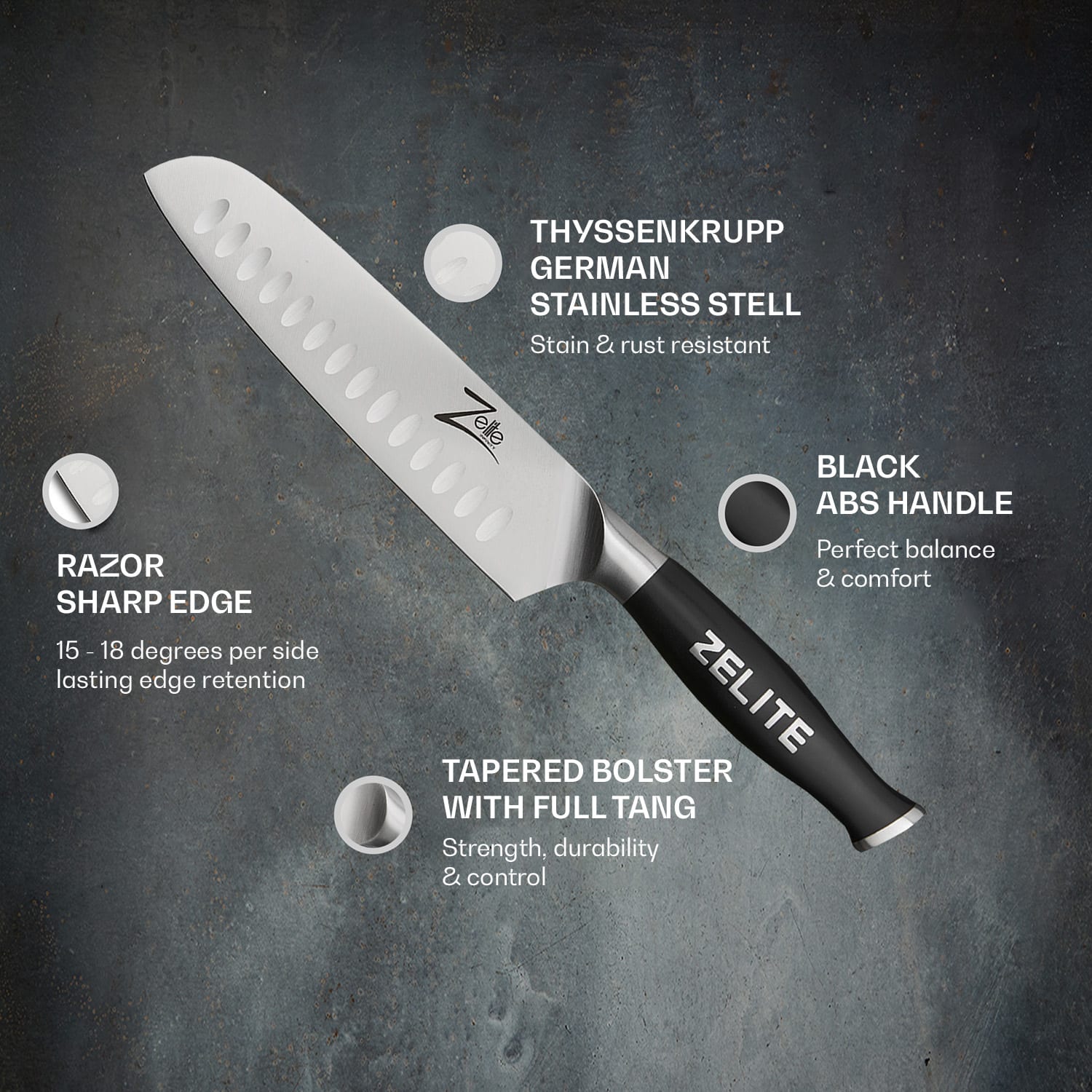 Dokonalé nože pre hobby kuchárov, profesionálov v kuchyni a všetkých, ktorí majú radi ostré nože! Séria nožov Zelite Infinity by Klarstein Comfort Pro kombinuje extrémnu ostrosť, vysokú kvalitu a jednoduchú manipuláciu s elegantným vzhľadom a zjednodušuje krájanie, sekanie alebo lúpanie. Čepele z kvalitnej nemeckej nehrdzavejúcej ocele od spoločnosti Thyssenkrupp sú tvrdé, flexibilné a ostré ako britva. Vďaka prechodu od čepele k záštite bez hrán a štrbín a tiež vďaka ergonomickým rukovätiam s perfektným vyvážením sedia dobre v ruke a umožňujú dokonale presné krájanie.7″ nôž santoku Zelite Infinity by Klarstein Comfort Pro je japonský univerzálny nôž, ktorého čepeľ je mimoriadne vhodná na tenulinké krájanie sushi a na prípravu jedál z woku. Čepeľ je špeciálne navrhnutá na rezanie tlakom a poskytuje prstom veľa priestoru. Doplň svoje kuchynské nože alebo ho použi ako perfektný darček pre priateľov, ktorí radi varia.